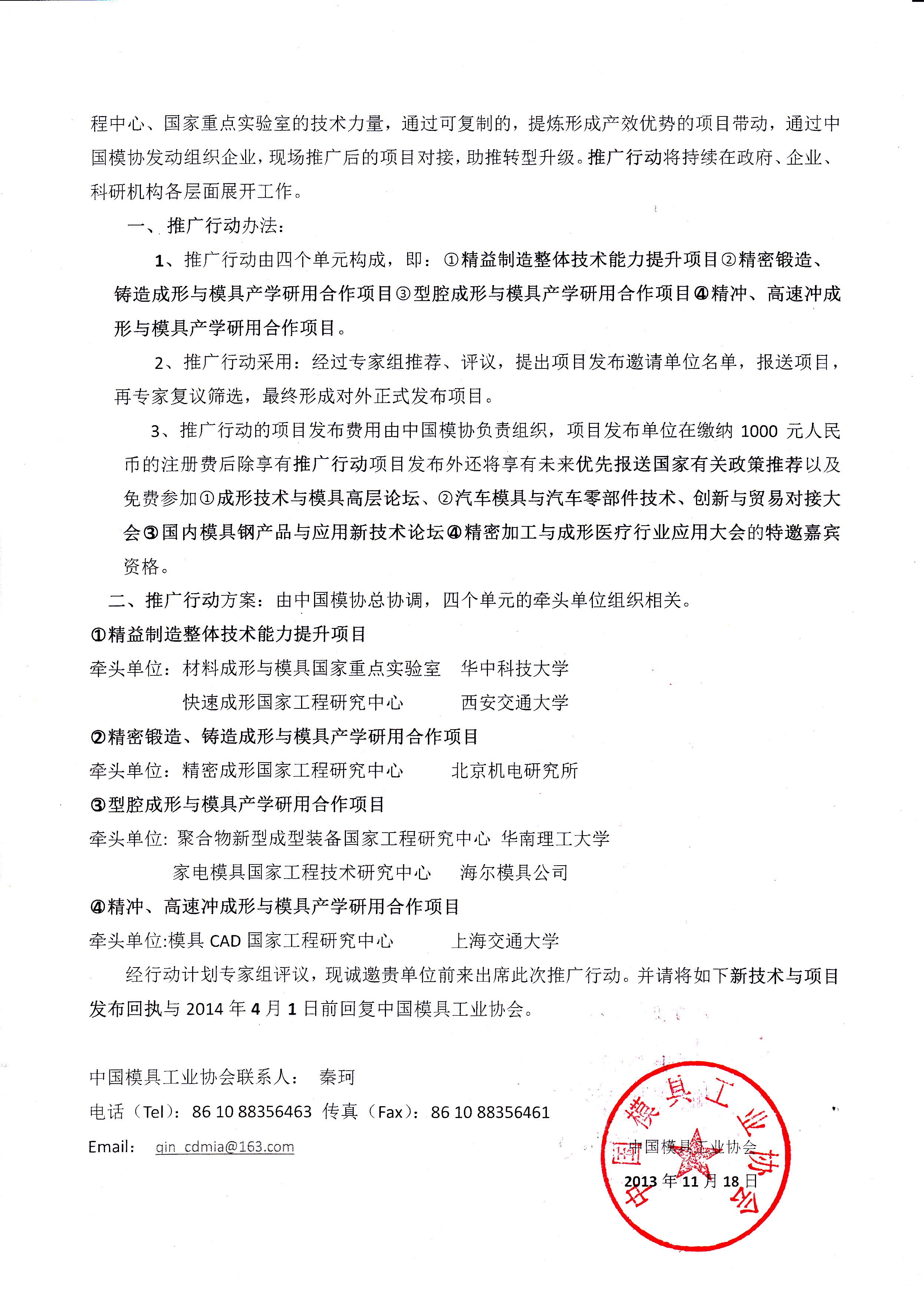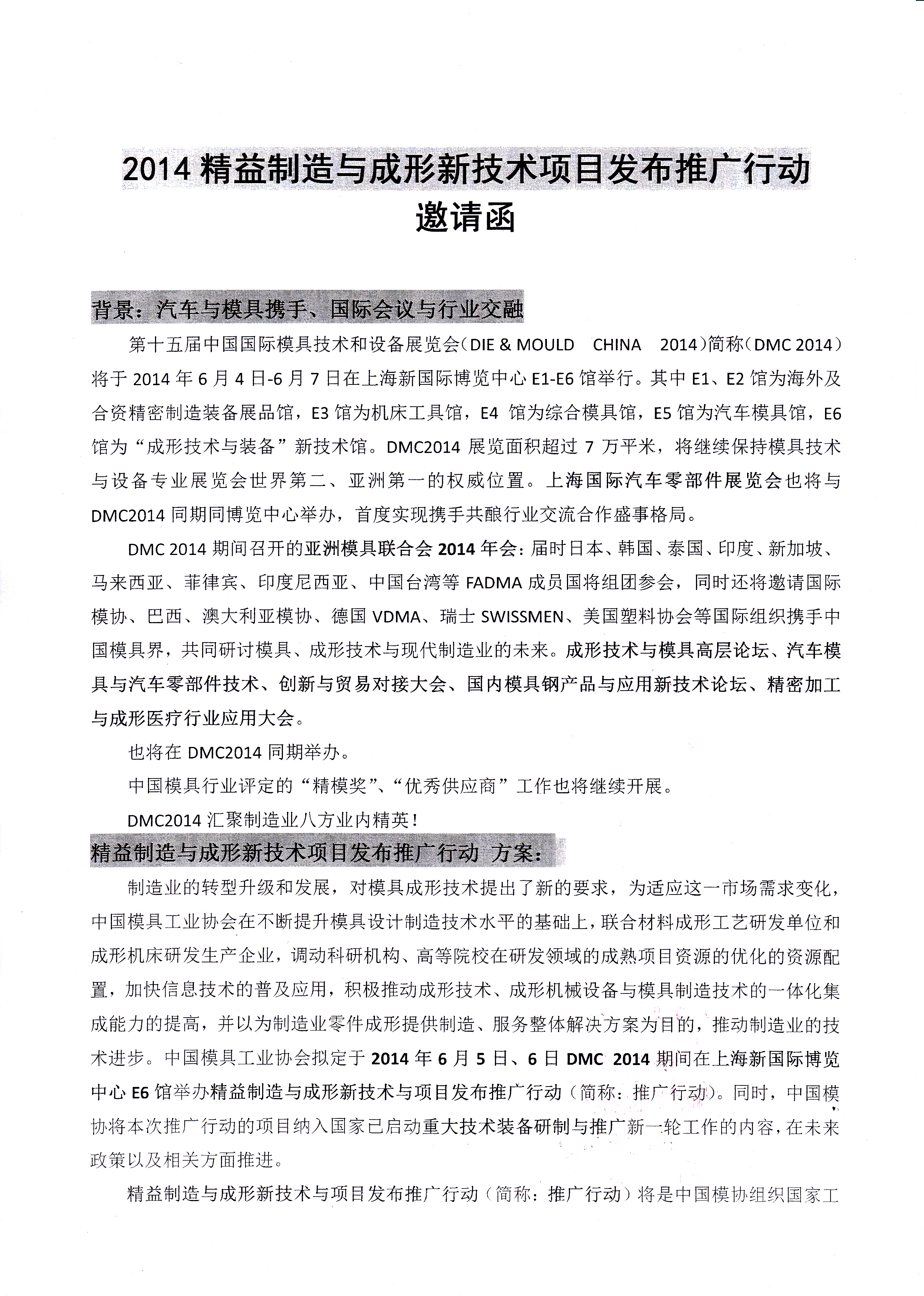 2014精益制造与成形新技术项目发布推广行动邀请函