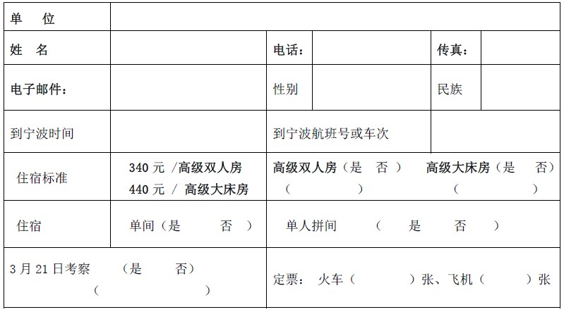 为了安排好与会代表在宁波的会议和随后的参观活动,请尽快确认后务必将回执于2014年3月10日前传真至021-65124191
