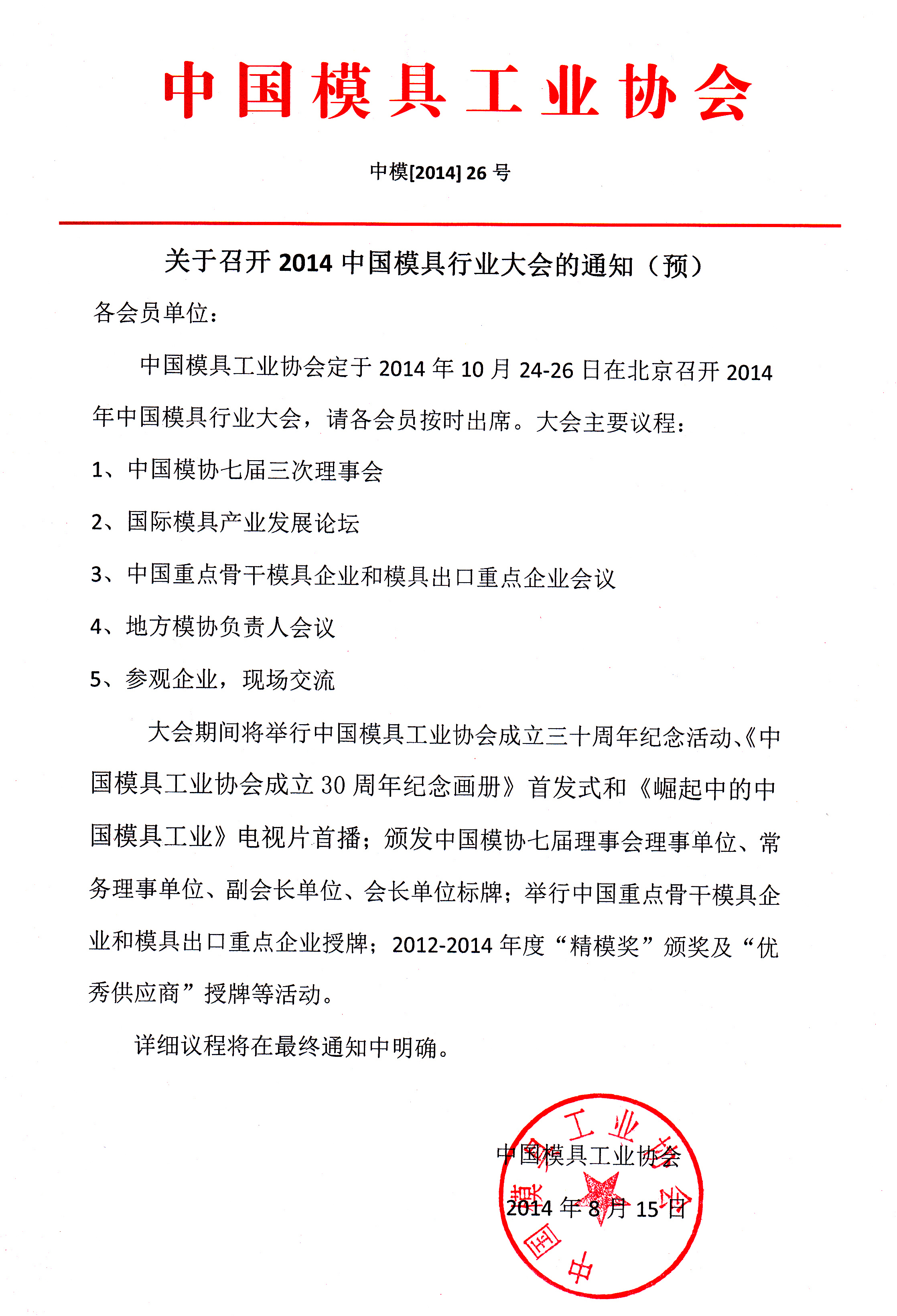 关于召开2014中国模具行业大会的通知(预)