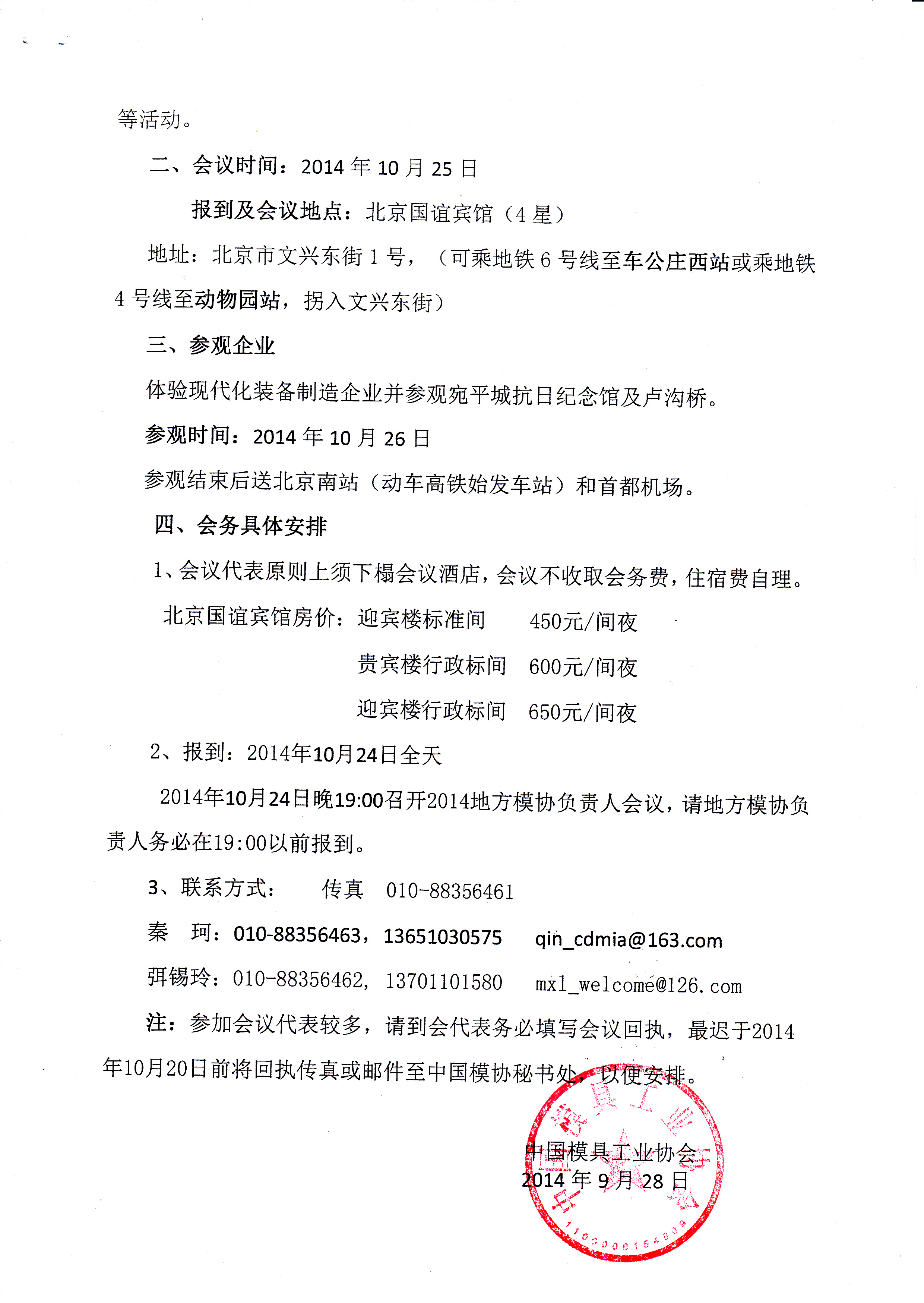 2014中国模具行业大会 会议回执.docx