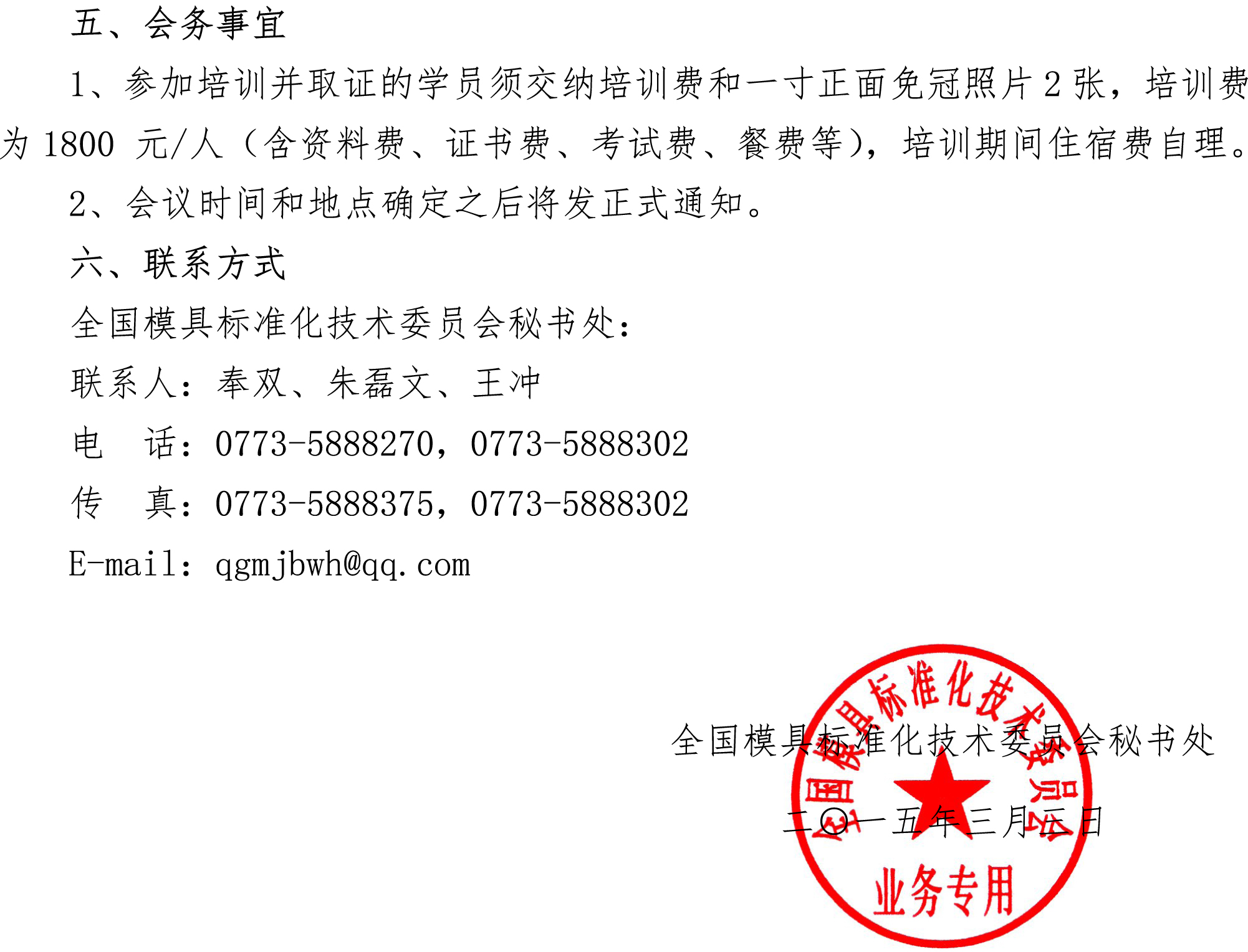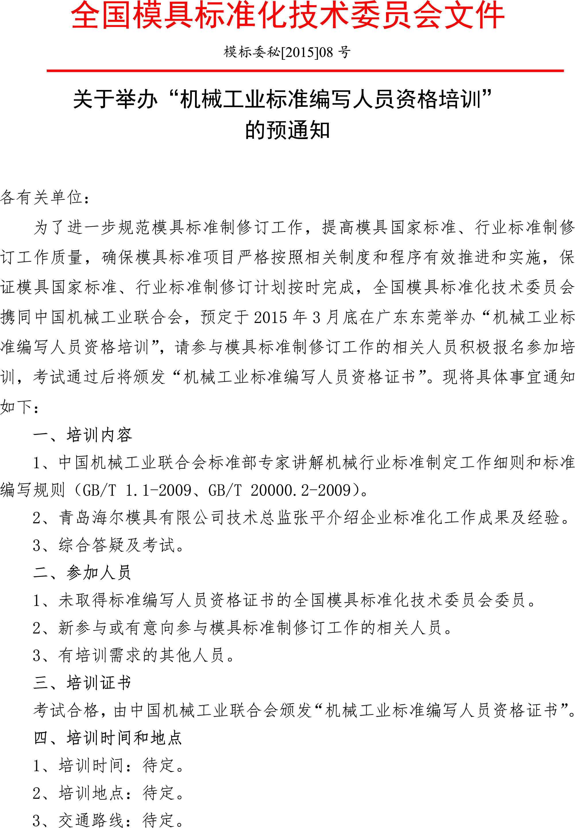 关于举办“机械工业标准编写人员资格培训”的预通知