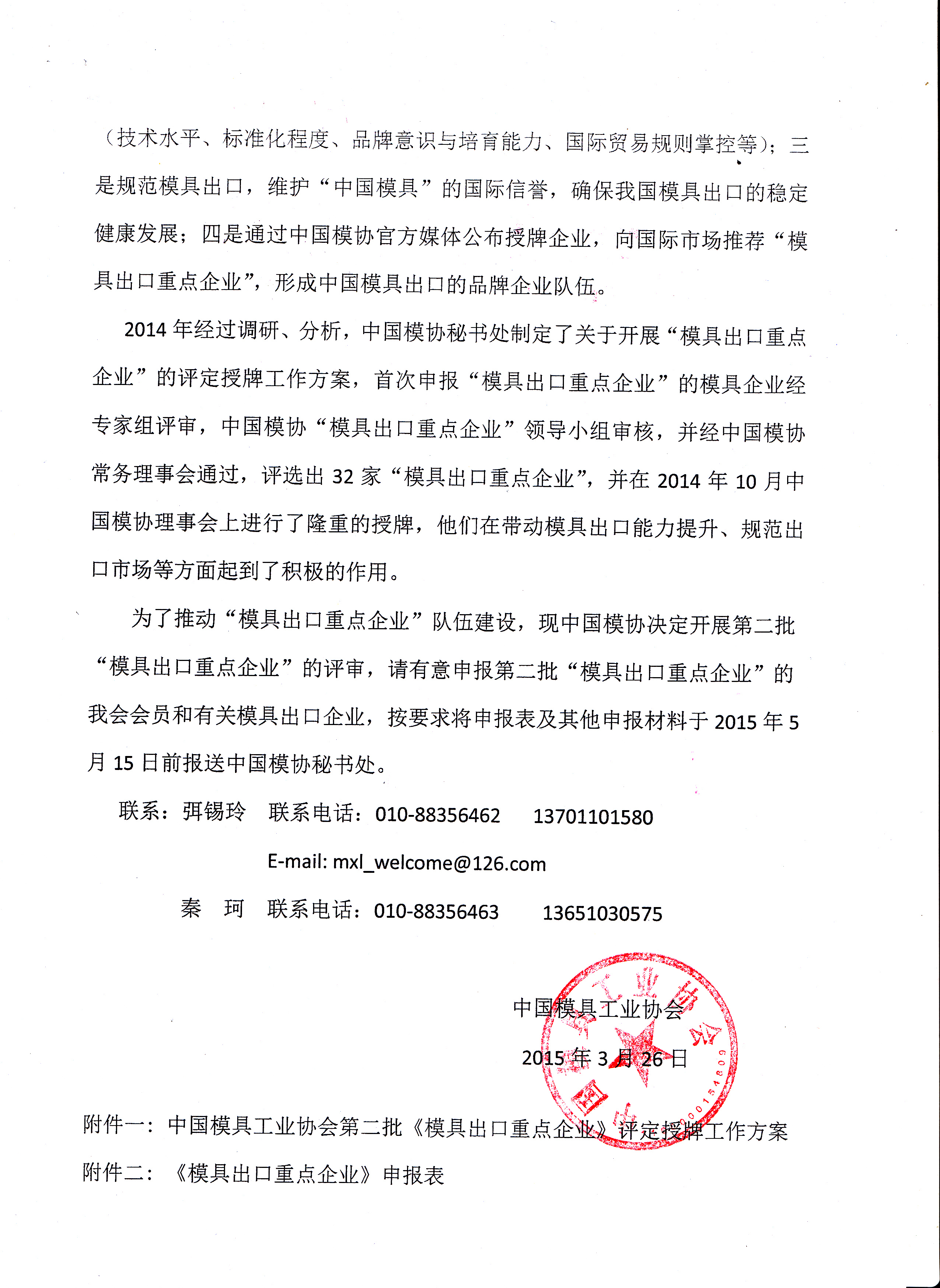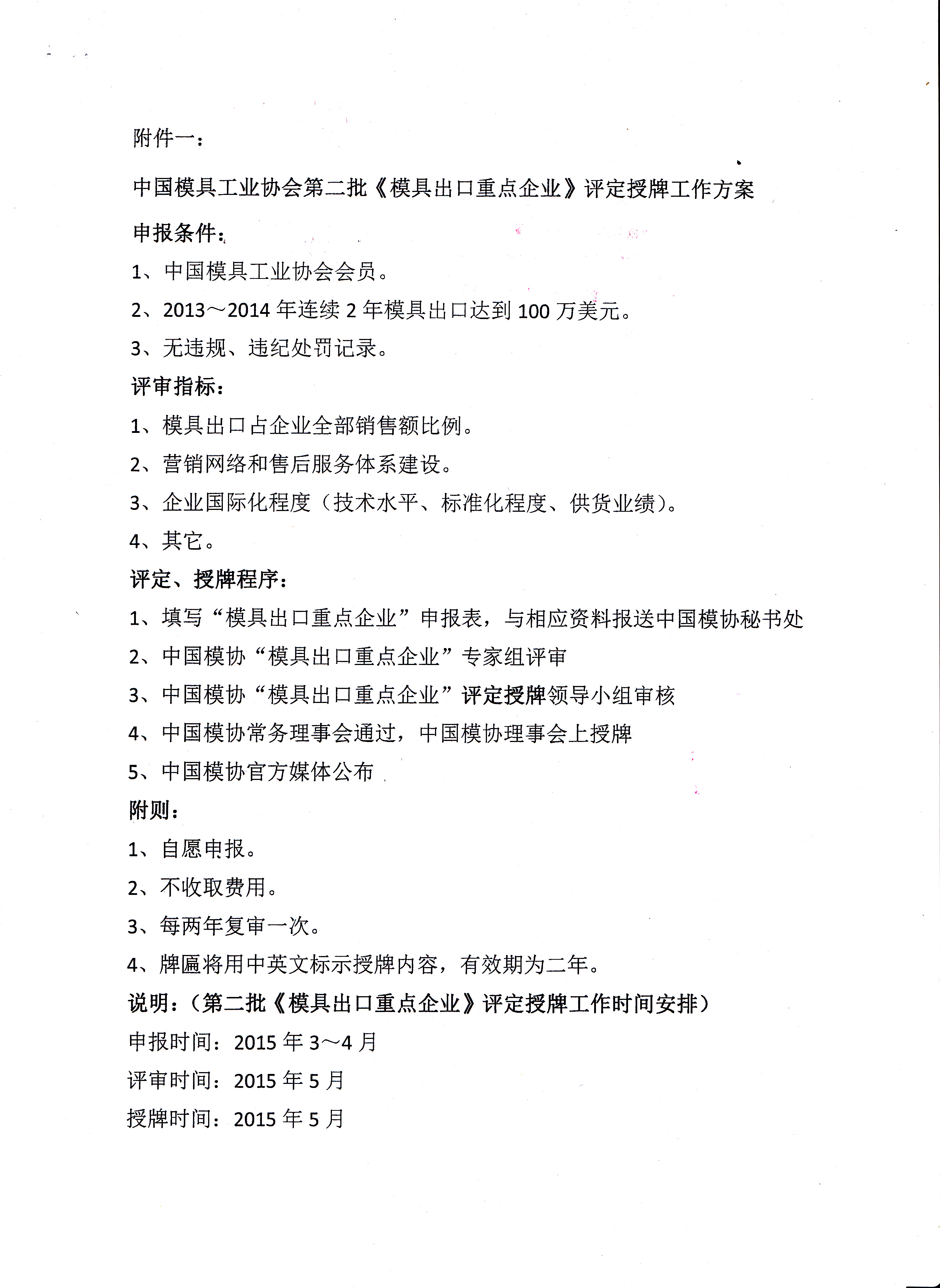 关于开展第二批《模具出口重点企业》评定授牌工作的通知