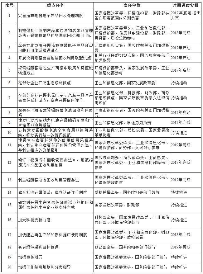 (三)工作目标。到2020年,生产者责任延伸制度相关政策体系初步形成,产品生态设计取得重大进展,重点品种的废弃产品规范回收与循环利用率平均达到40%。到2025年,生产者责任延伸制度相关法律法规基本完善,重点领域生产者责任延伸制度运行有序,产品生态设计普遍推行,重点产品的再生原料使用比例达到20%,废弃产品规范回收与循环利用率平均达到50%。