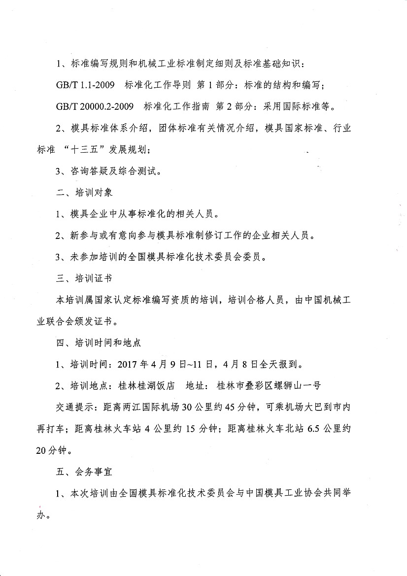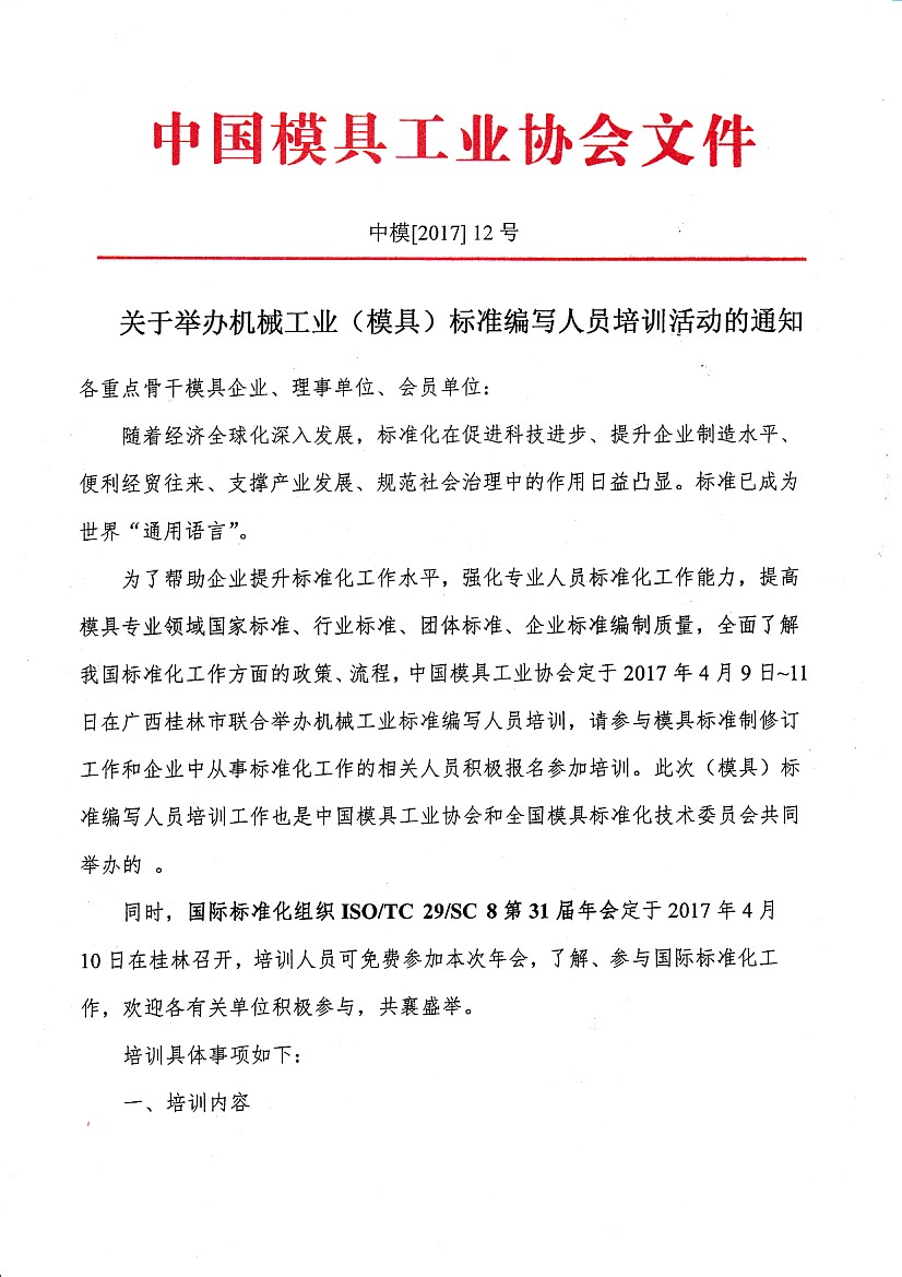 关于举办机械工业(模具)标准编写人员培训活动的通知