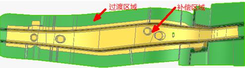 回弹补偿原理[8]:利用有限元数值模拟计算回弹,然后在预估有回弹的区域作出反方向的补偿值,使零件成形后的反弹正好与补偿值抵消,从而得到合格产品。
