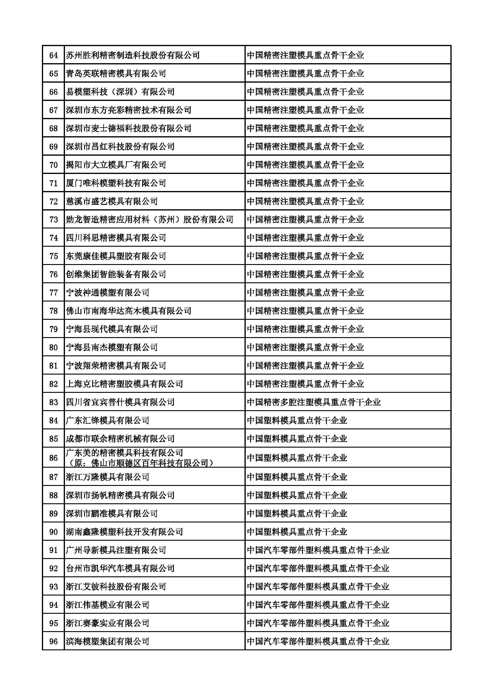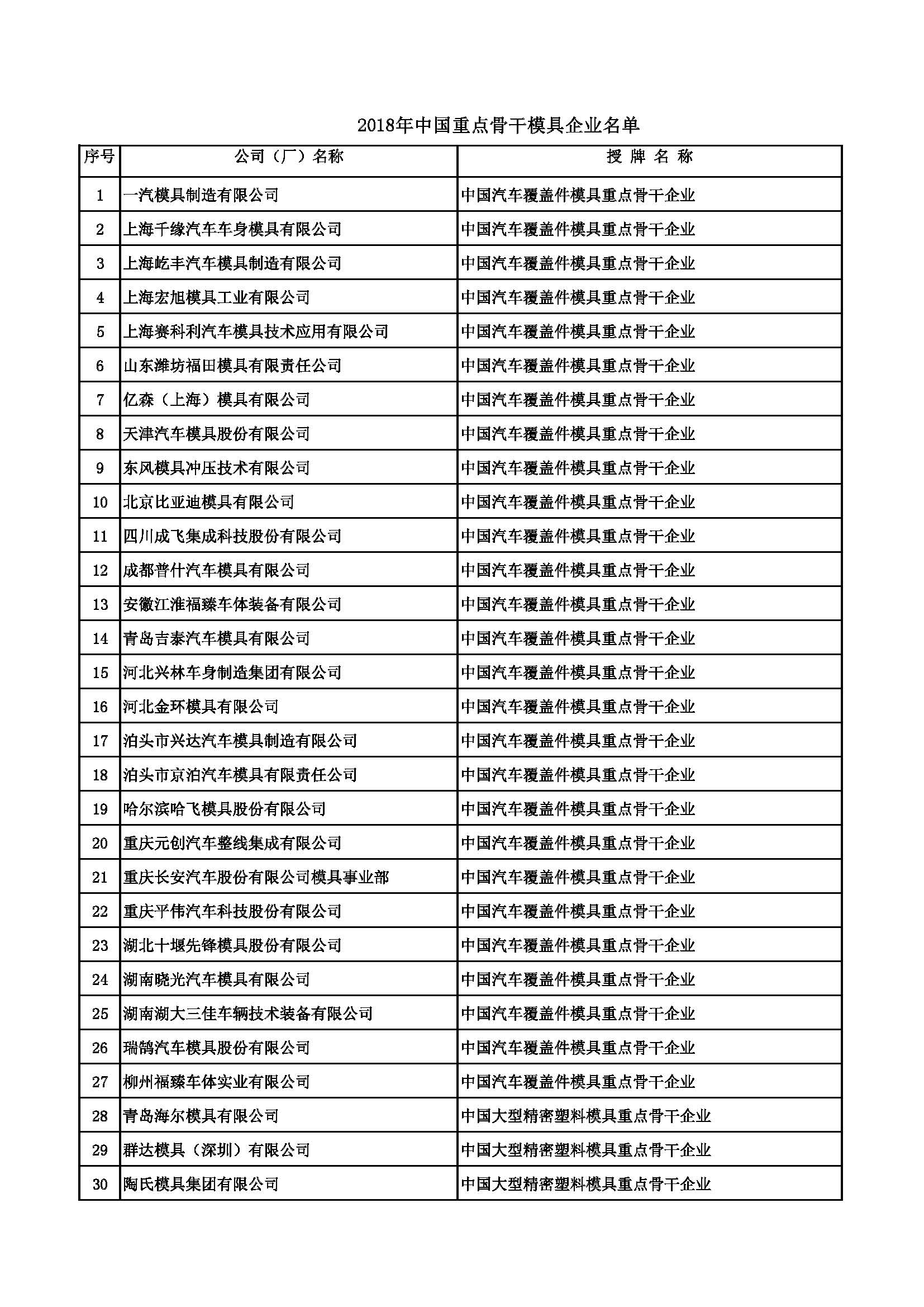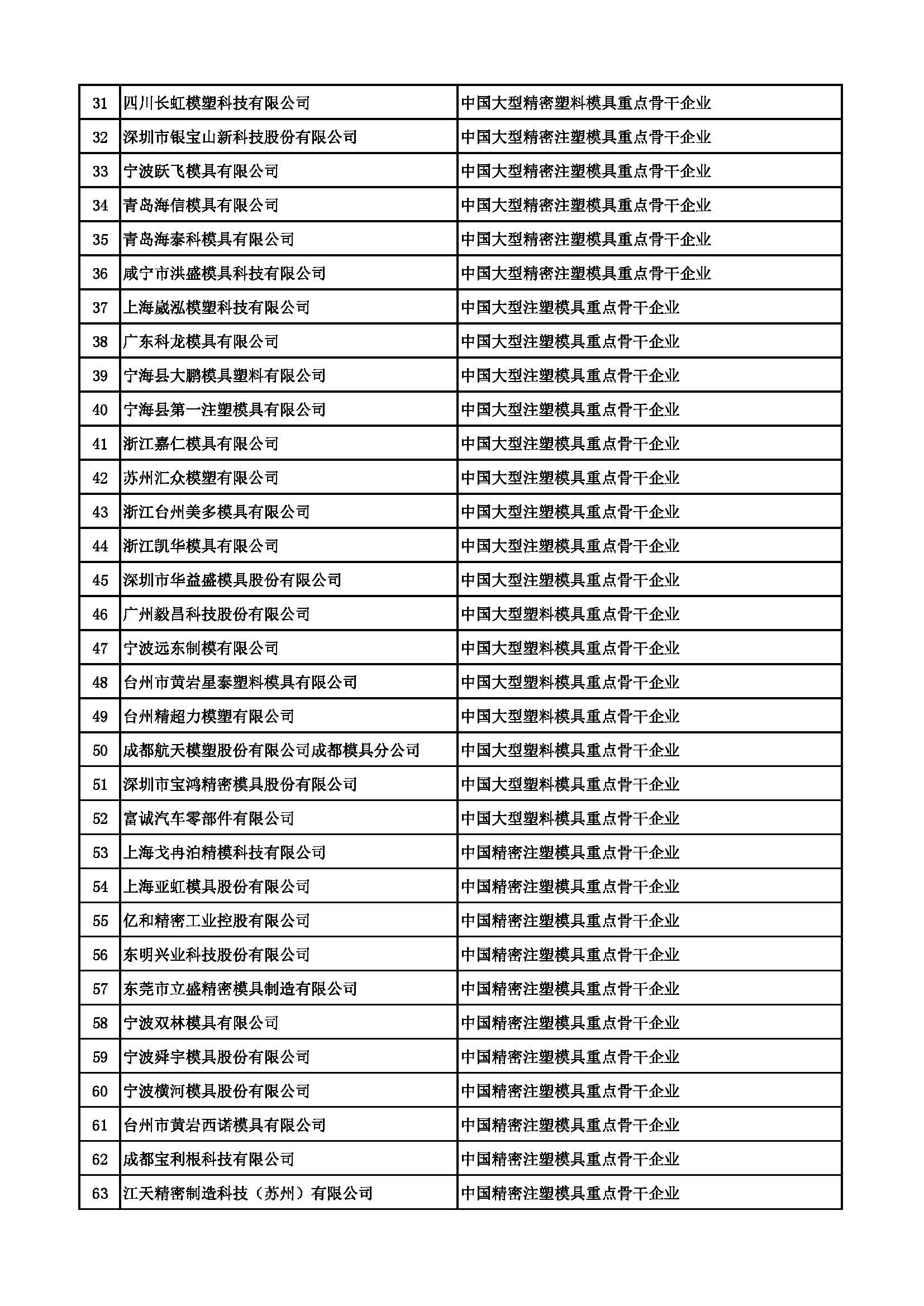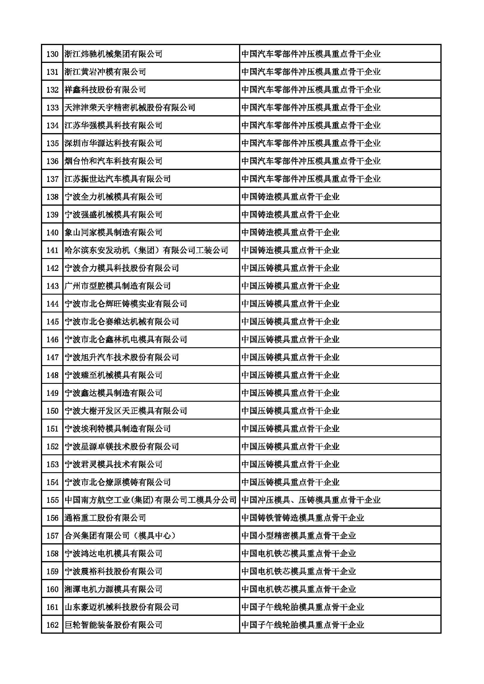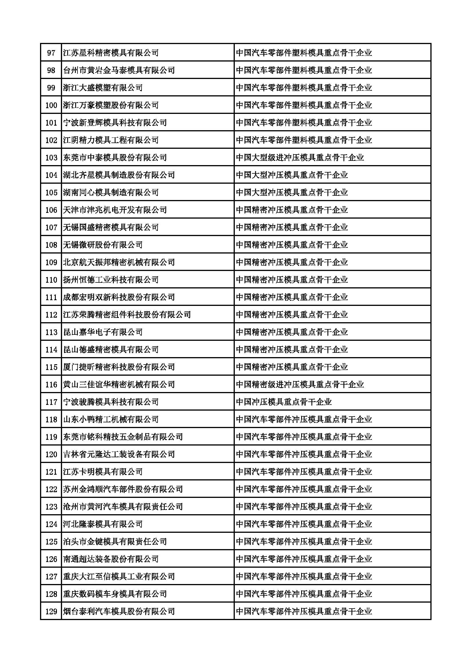中国重点骨干模具企业