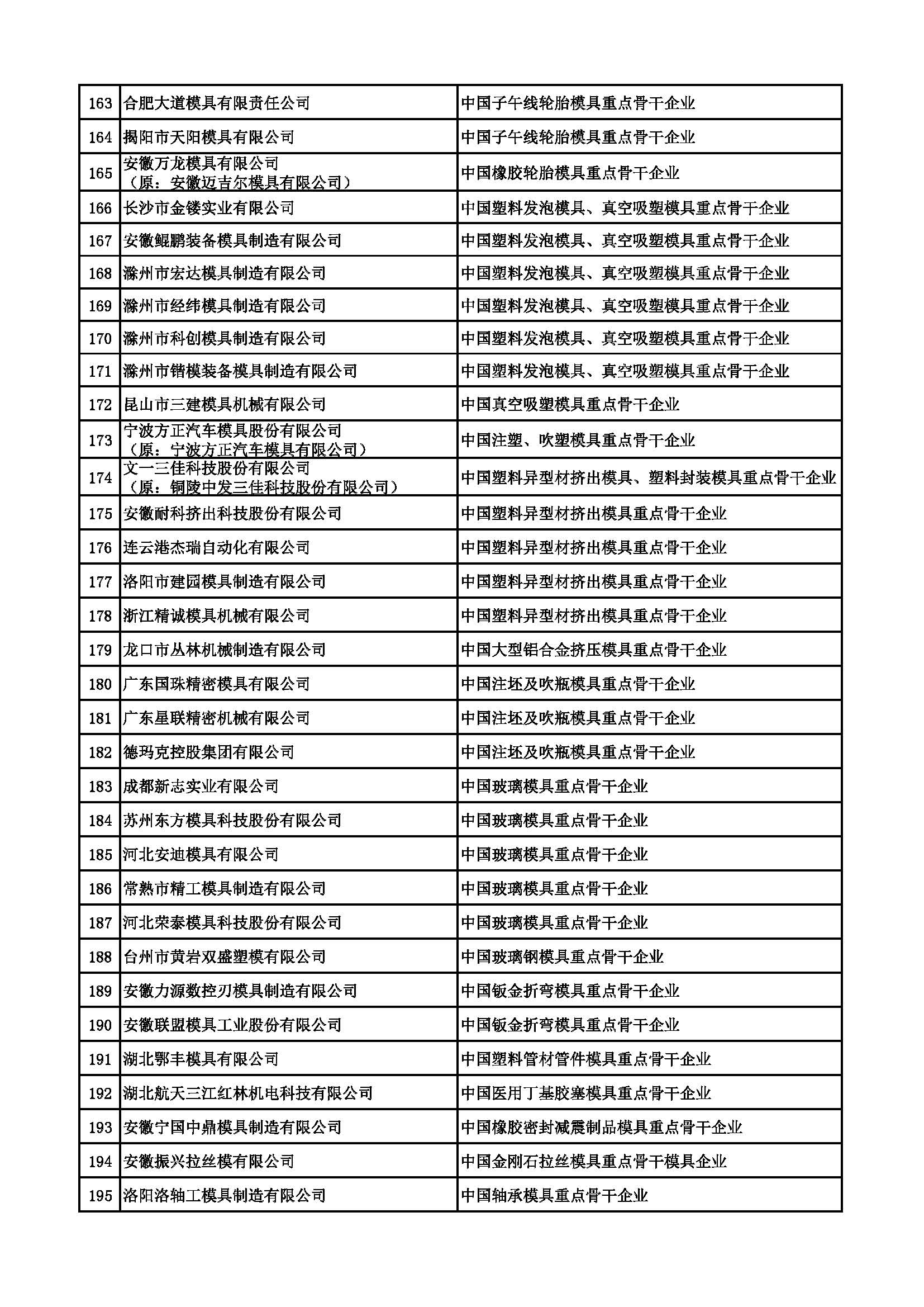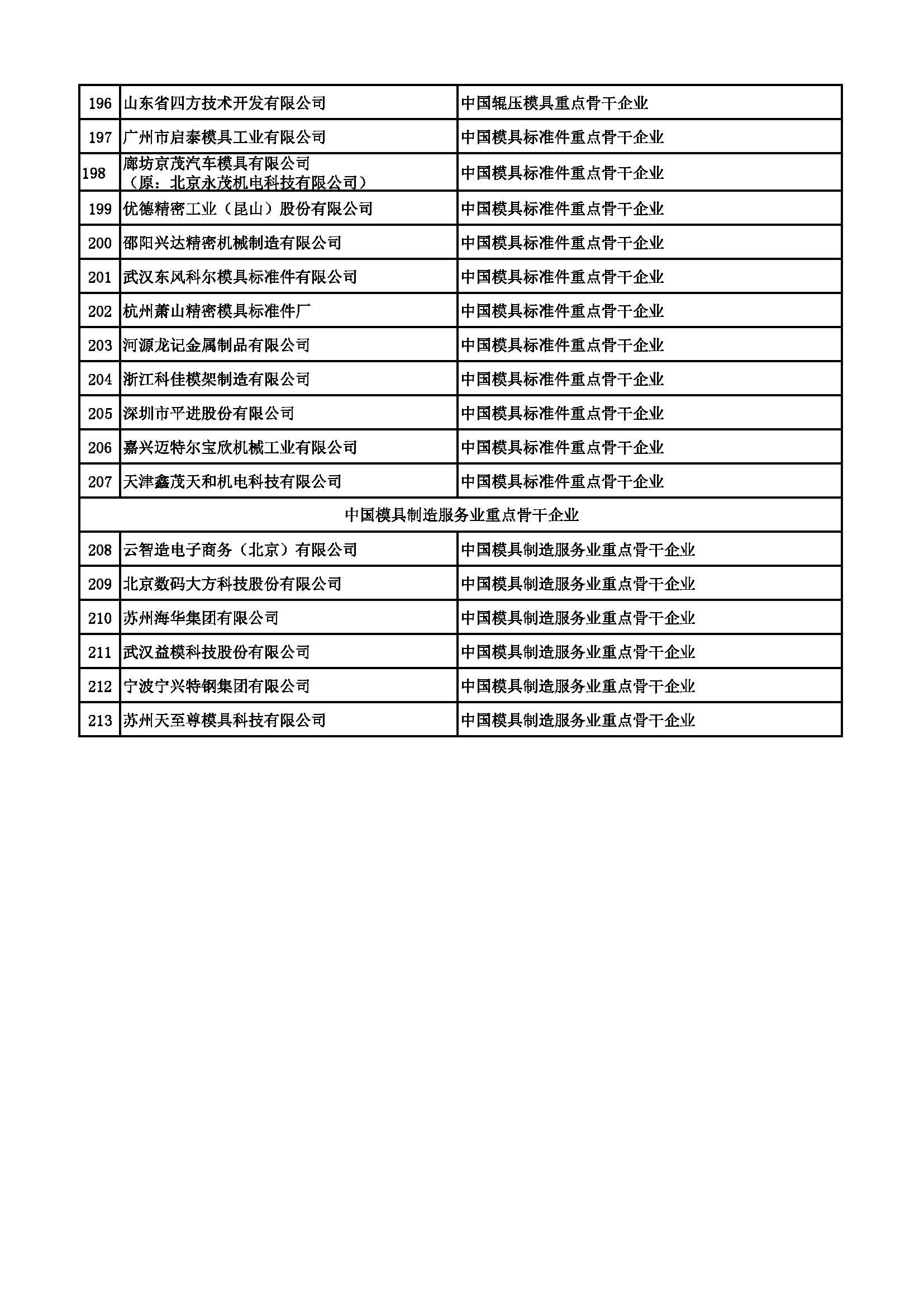 213家中国重点骨干模具企业名单