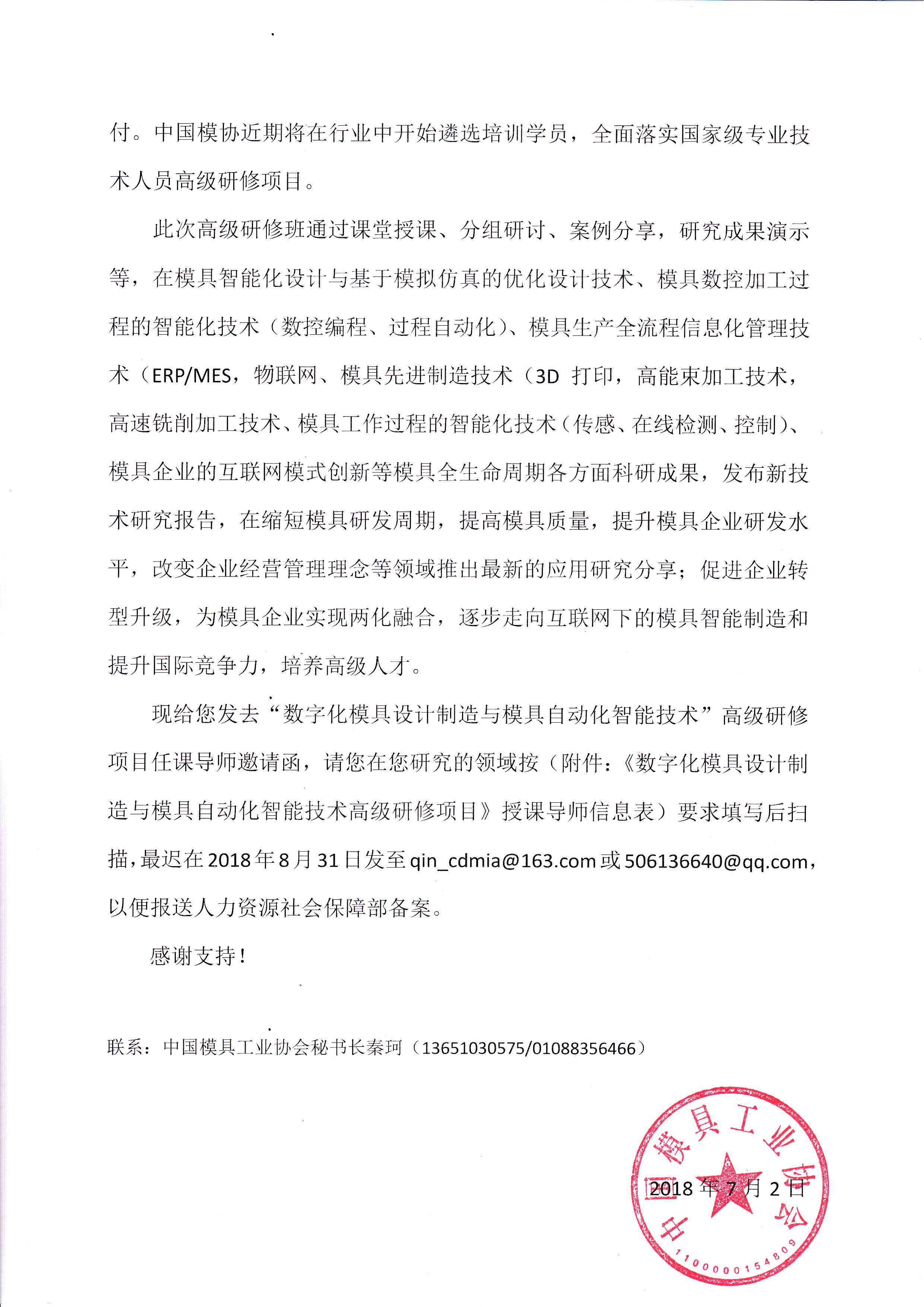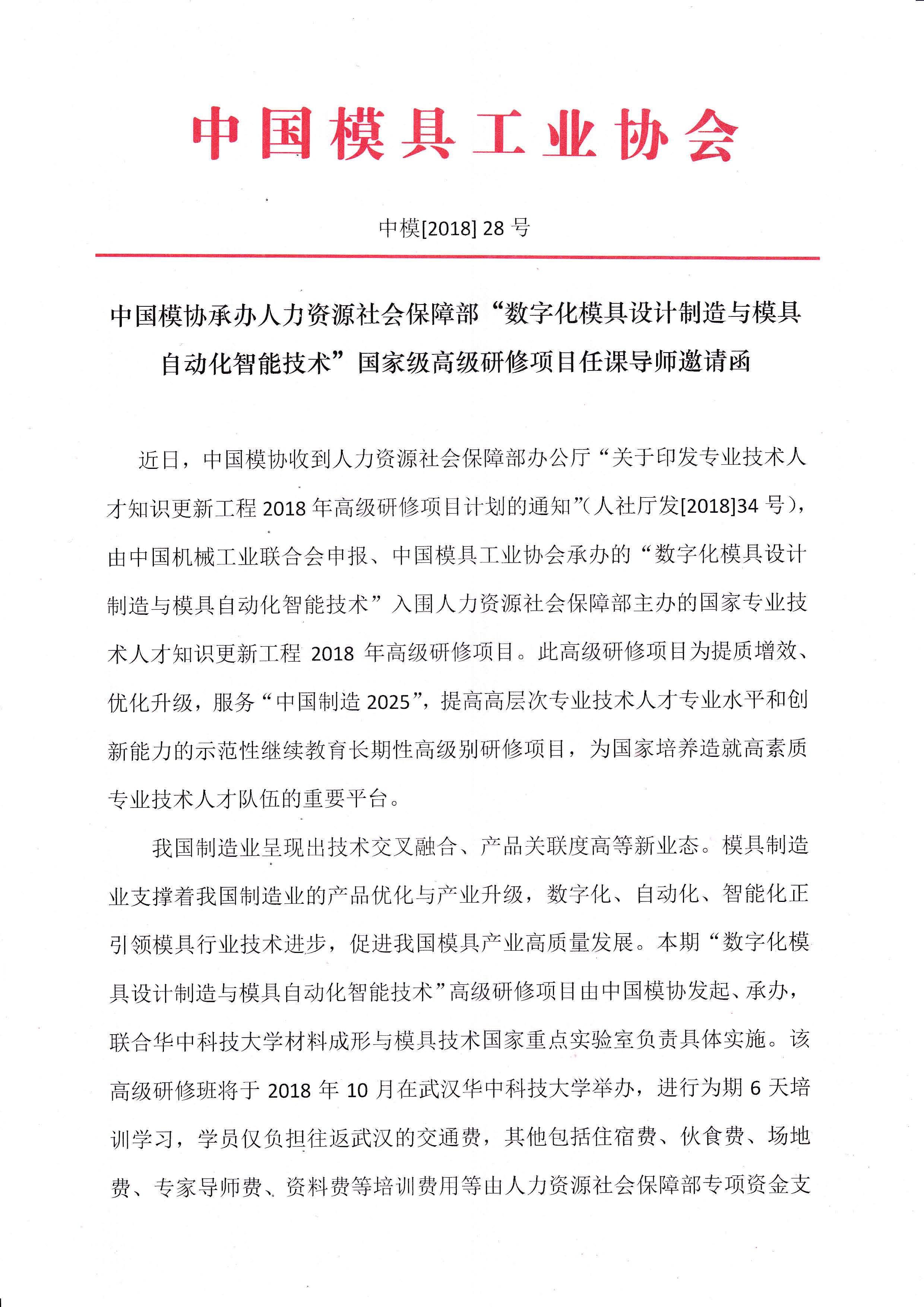 中国模协承办人力资源社会保障部高级研修项目任课导师邀请函