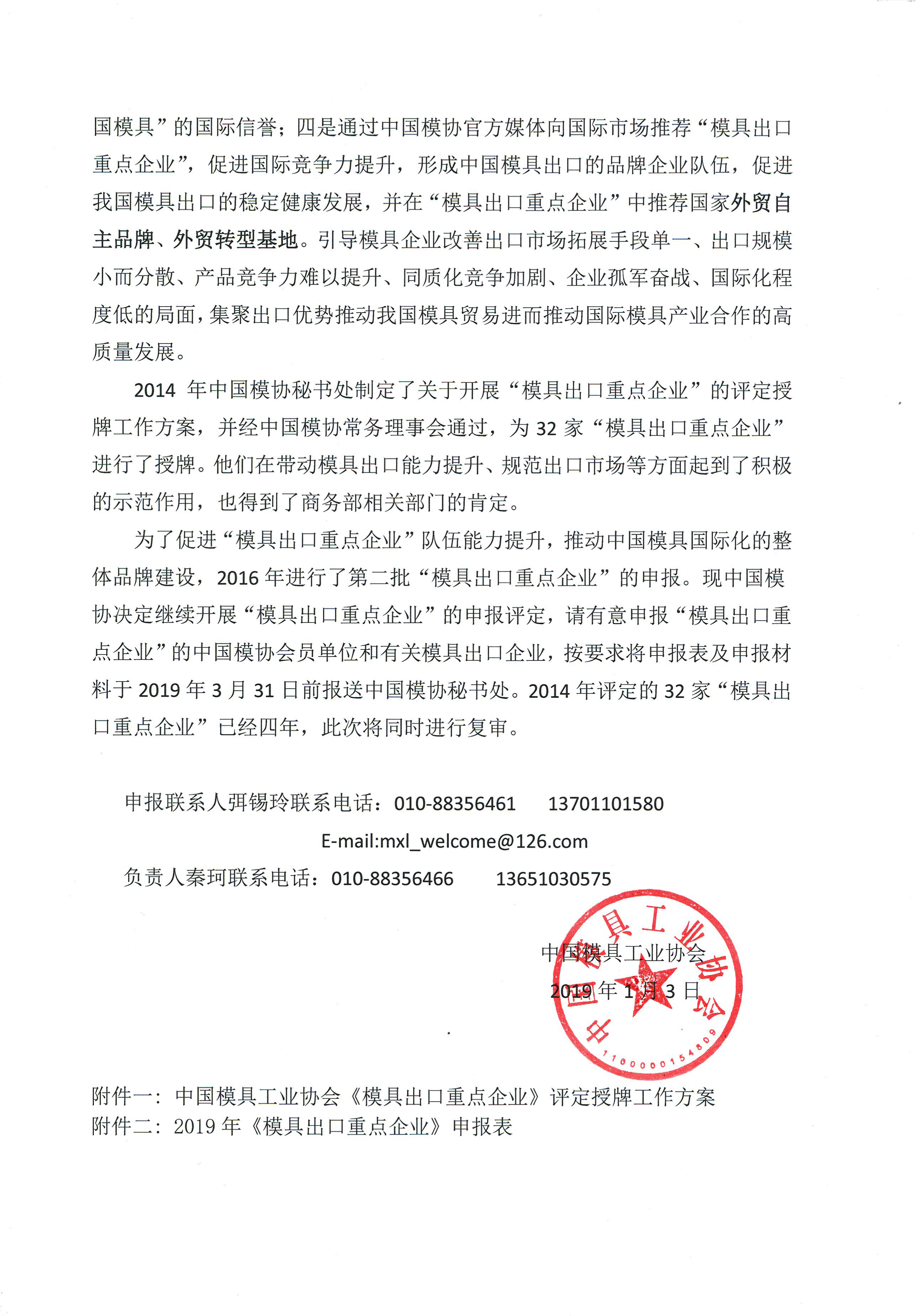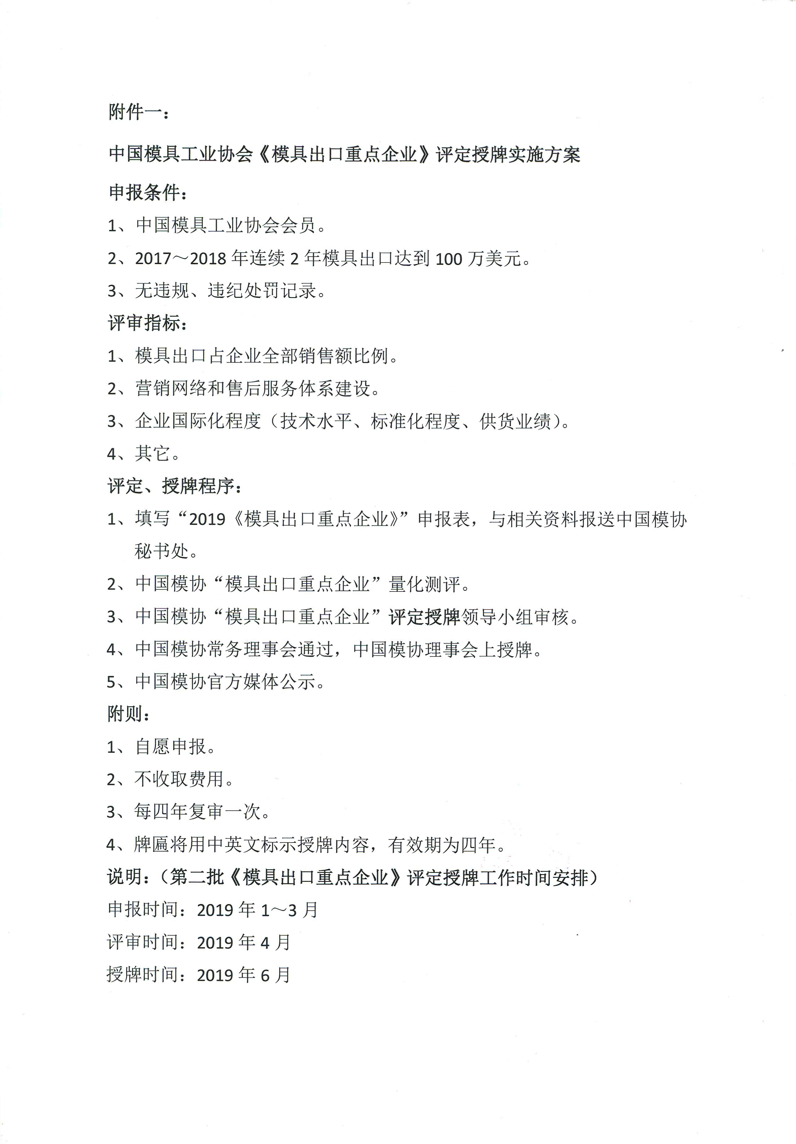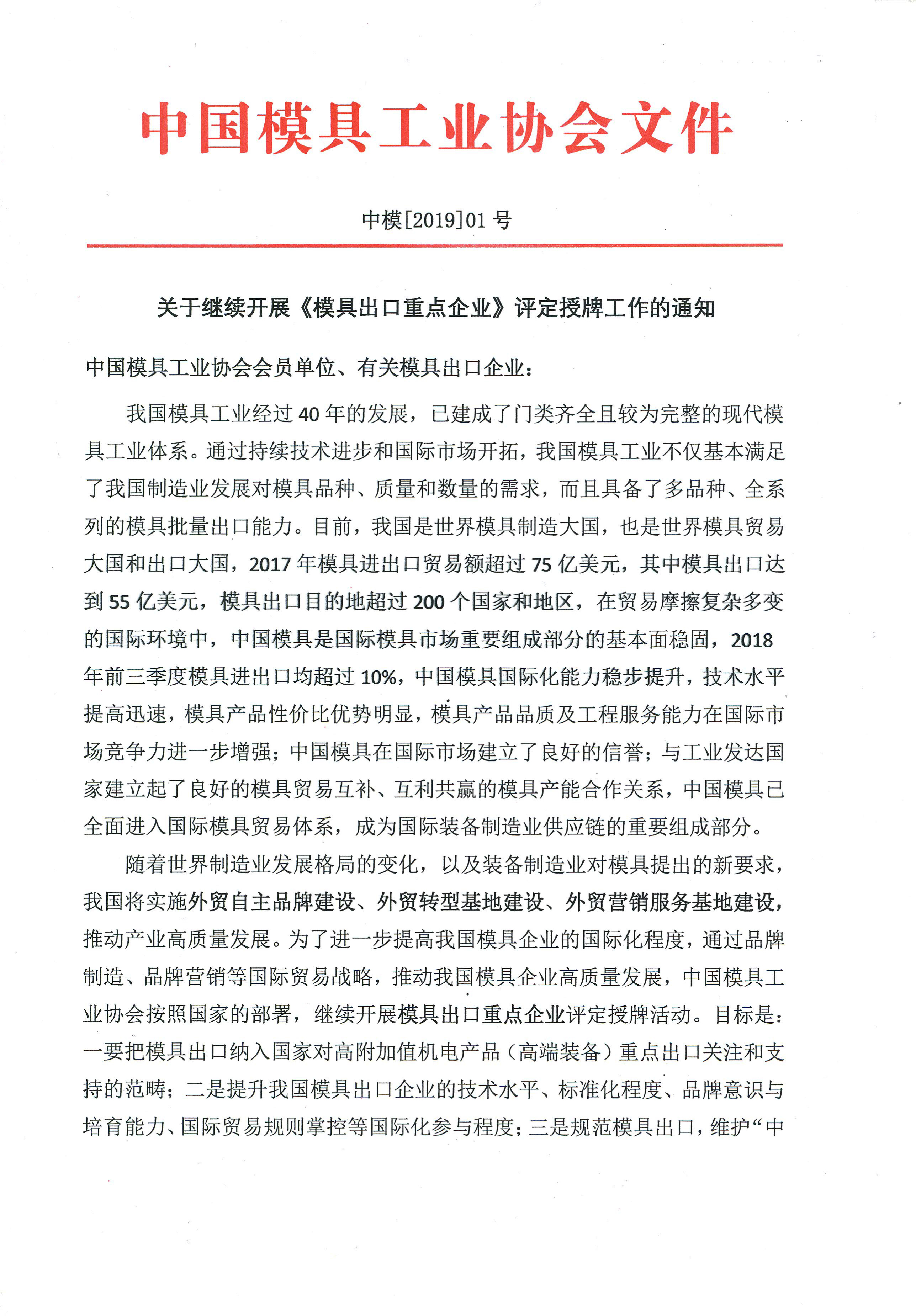 关于继续开展《模具出口重点企业》评定授牌工作的通知