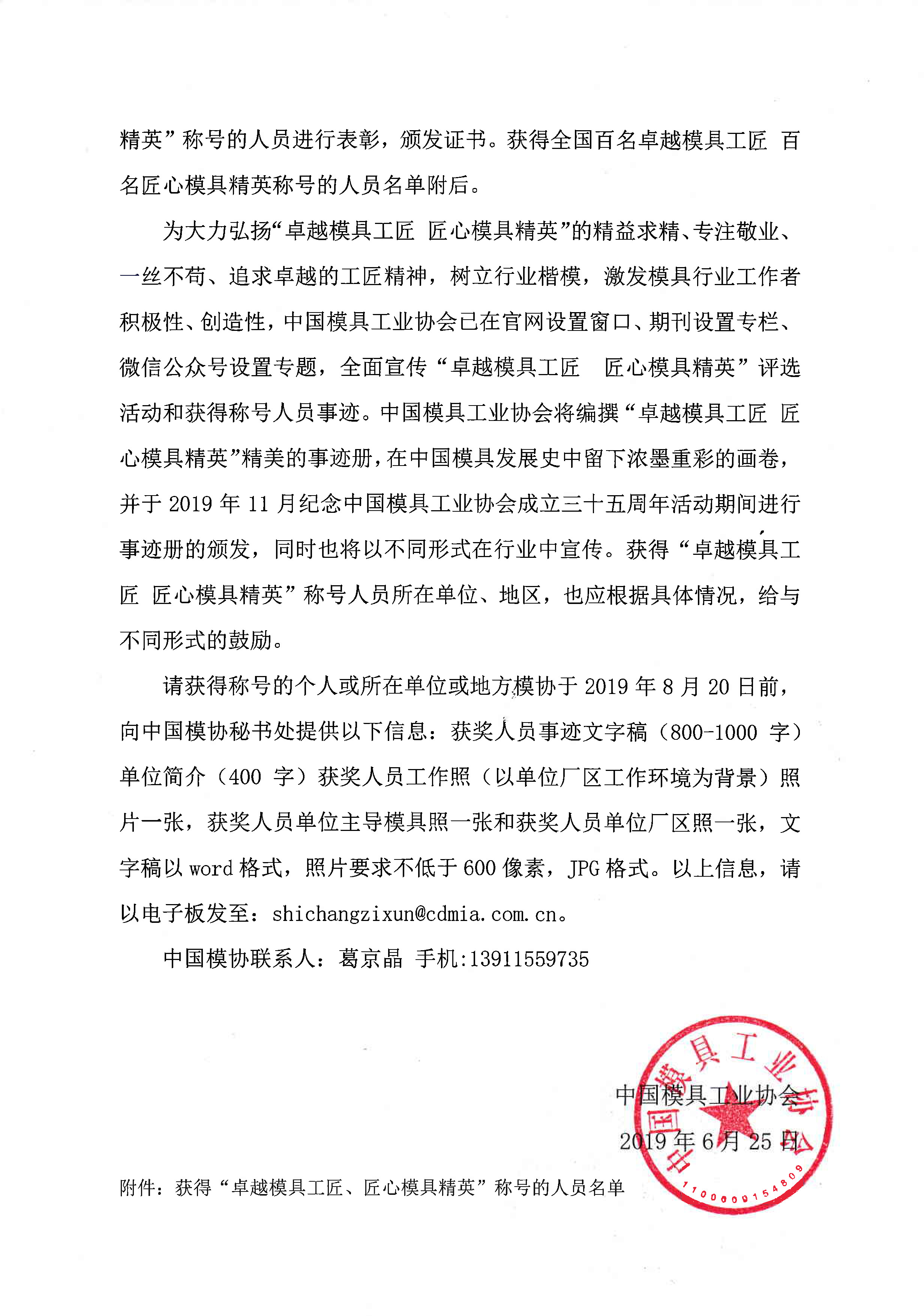 关于首届“卓越模具工匠 匠心模具精英”表彰决定及出版事迹册的通知