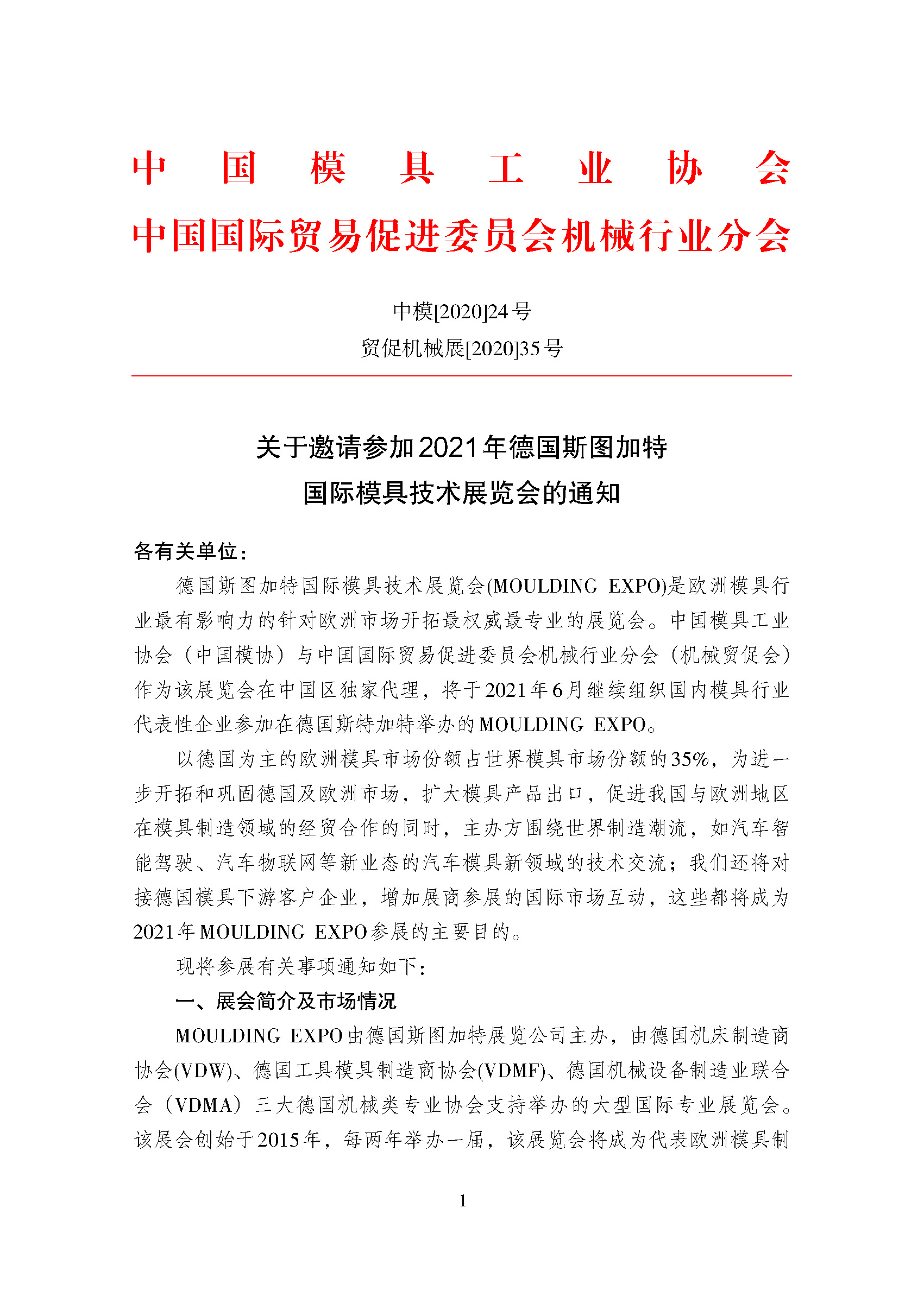 关于邀请参加2021年德国斯图加特国际模具技术展览会的通知