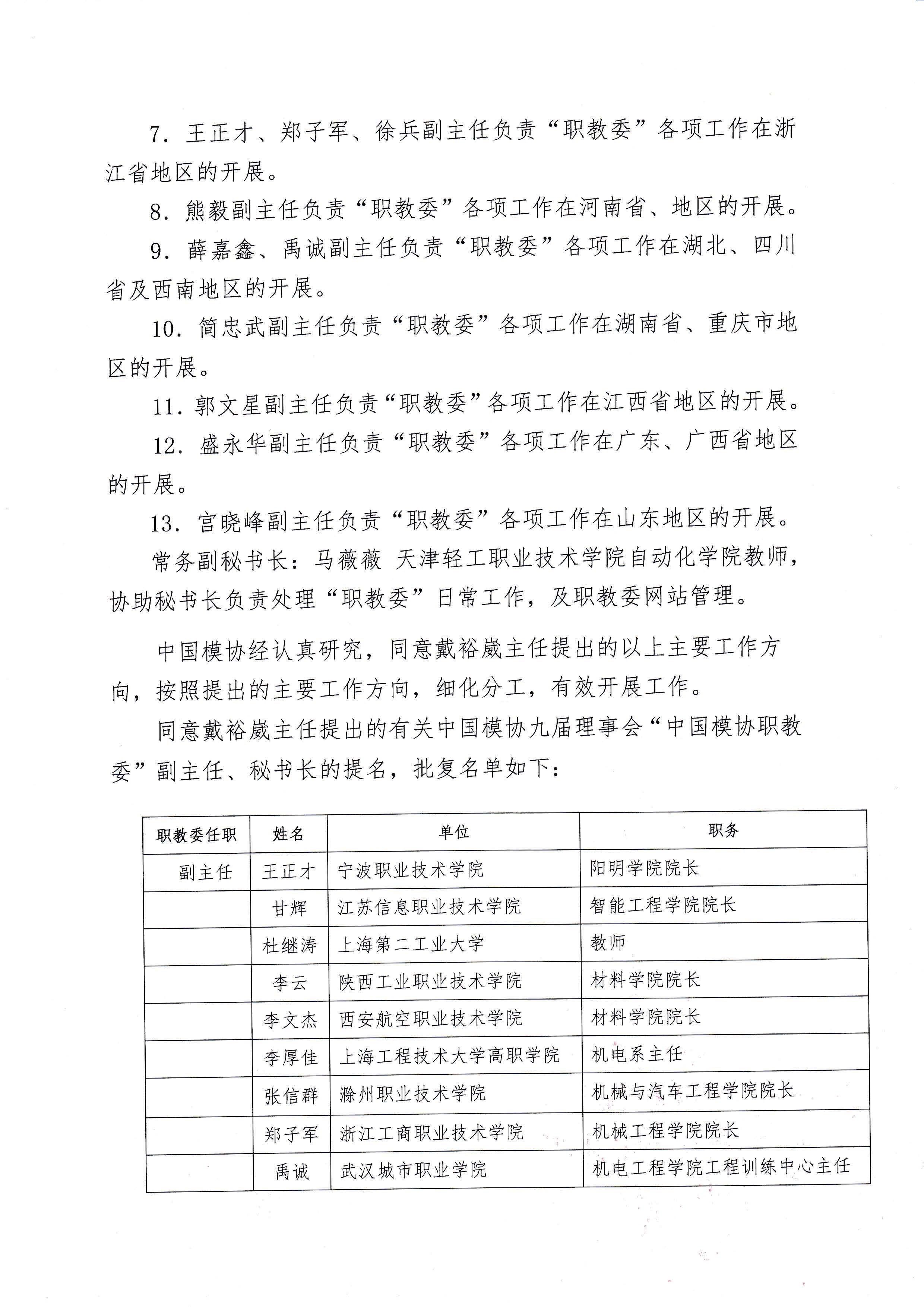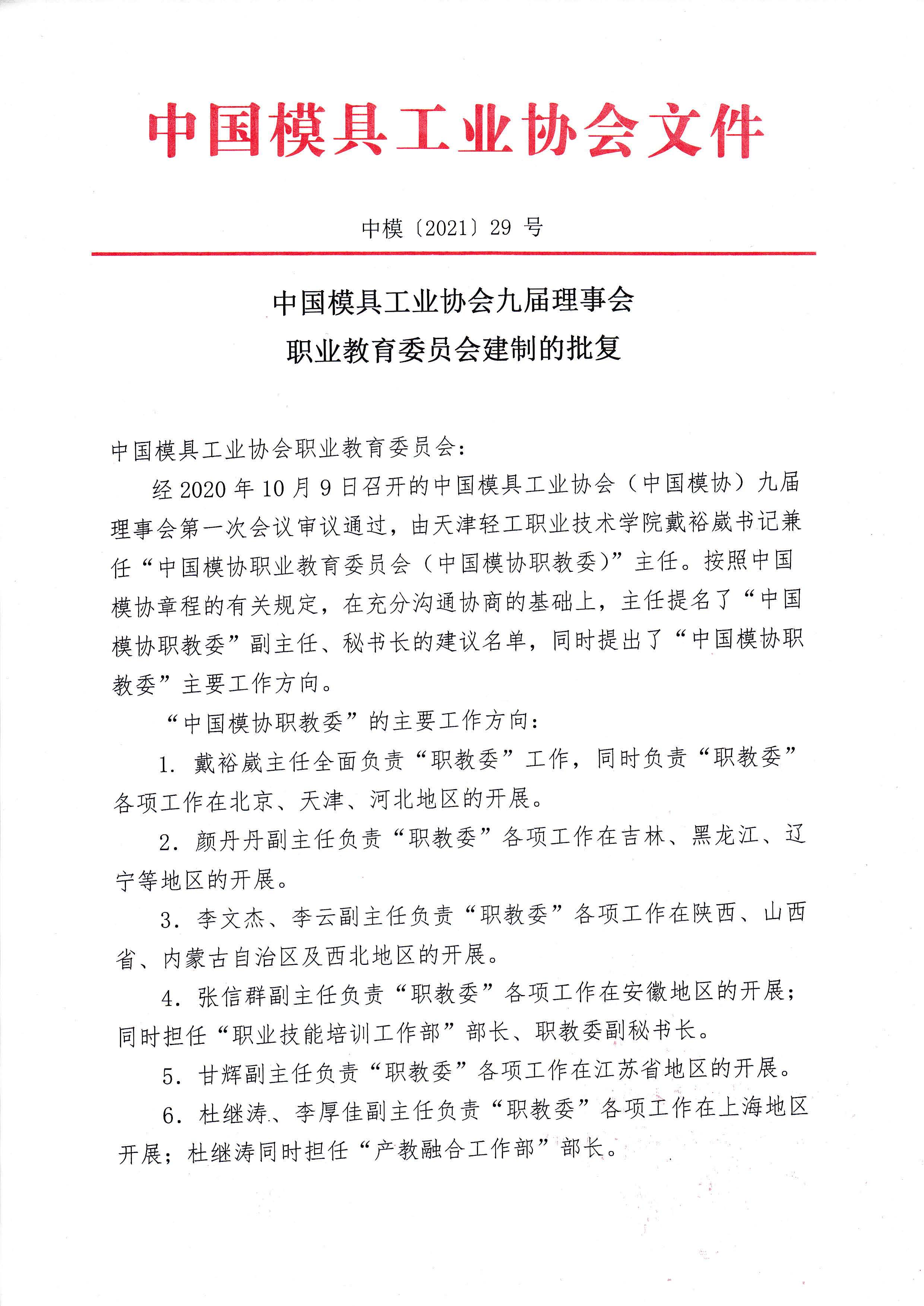 第九届理事会职业教育委员会建制的批复