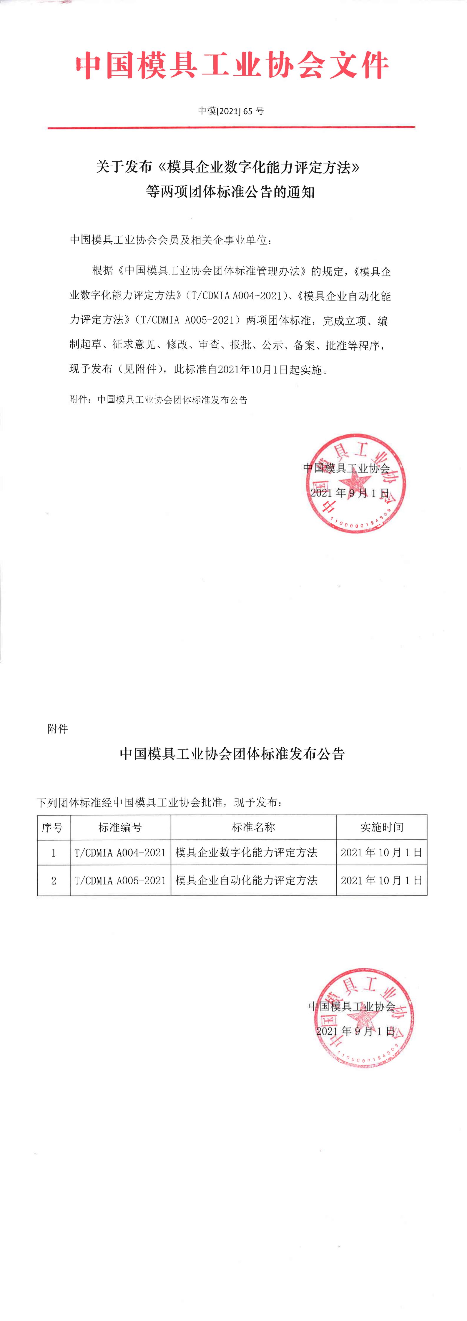 关于发布《模具企业数字化能力评定方法》等两项团体标准公告的通知