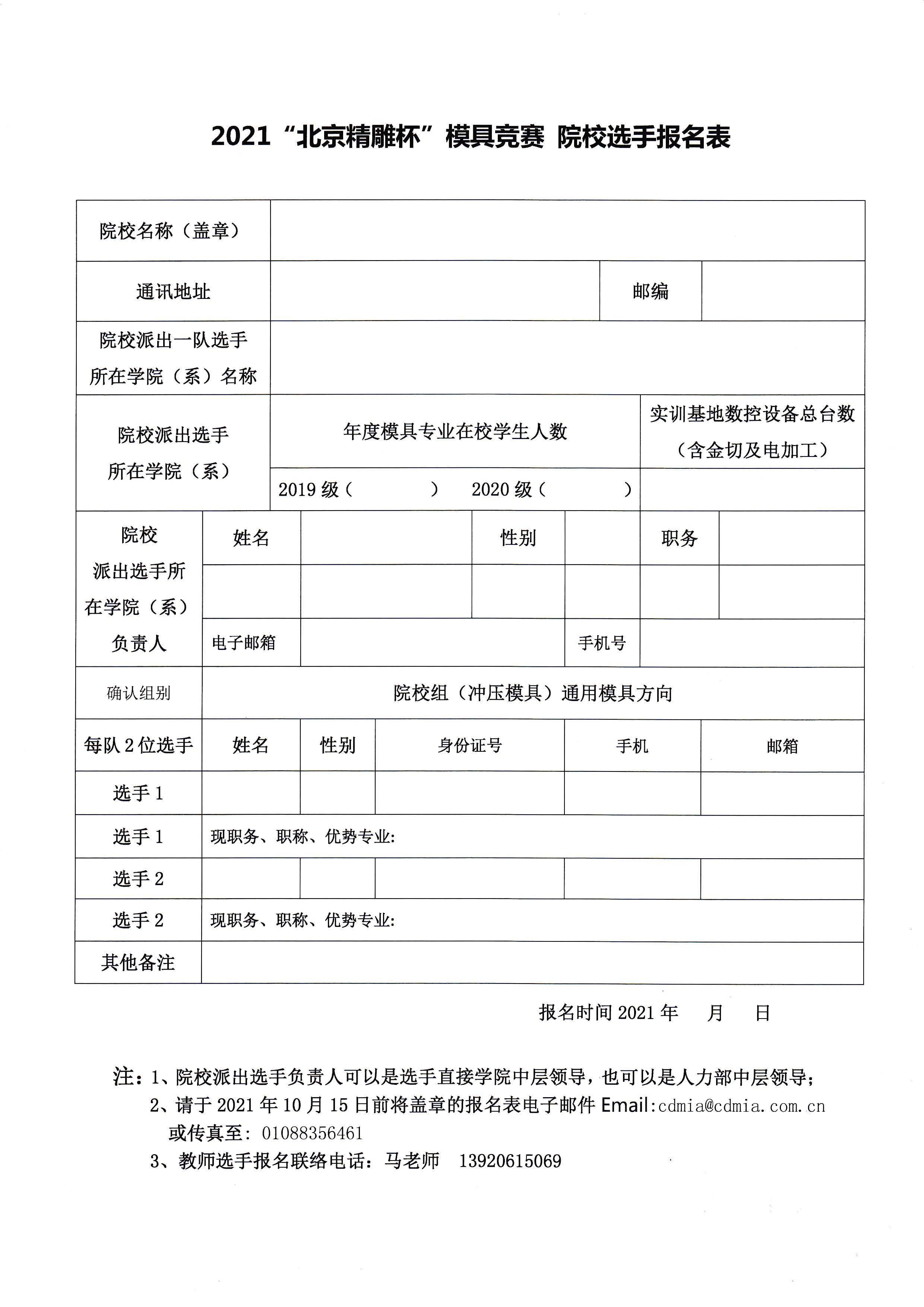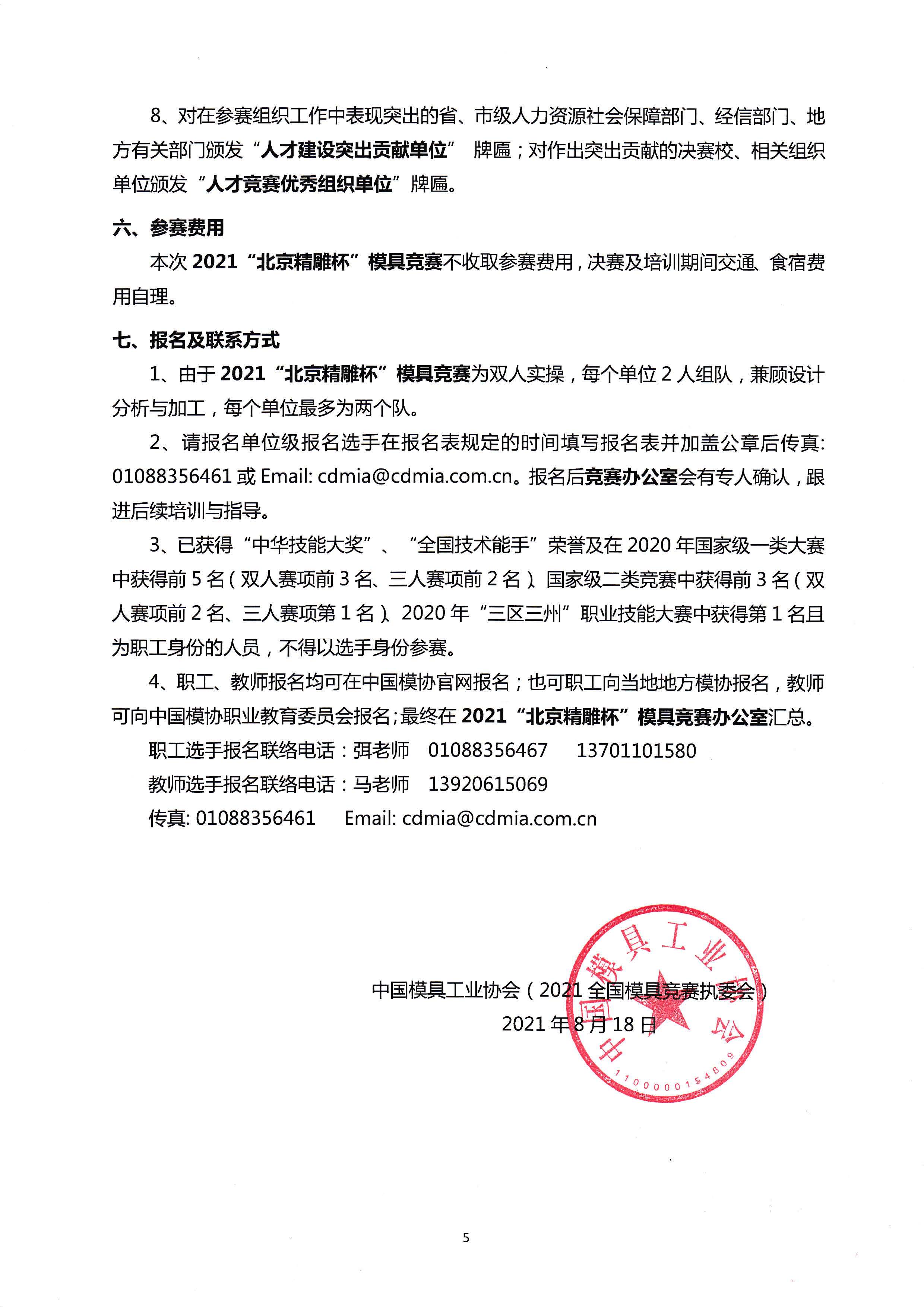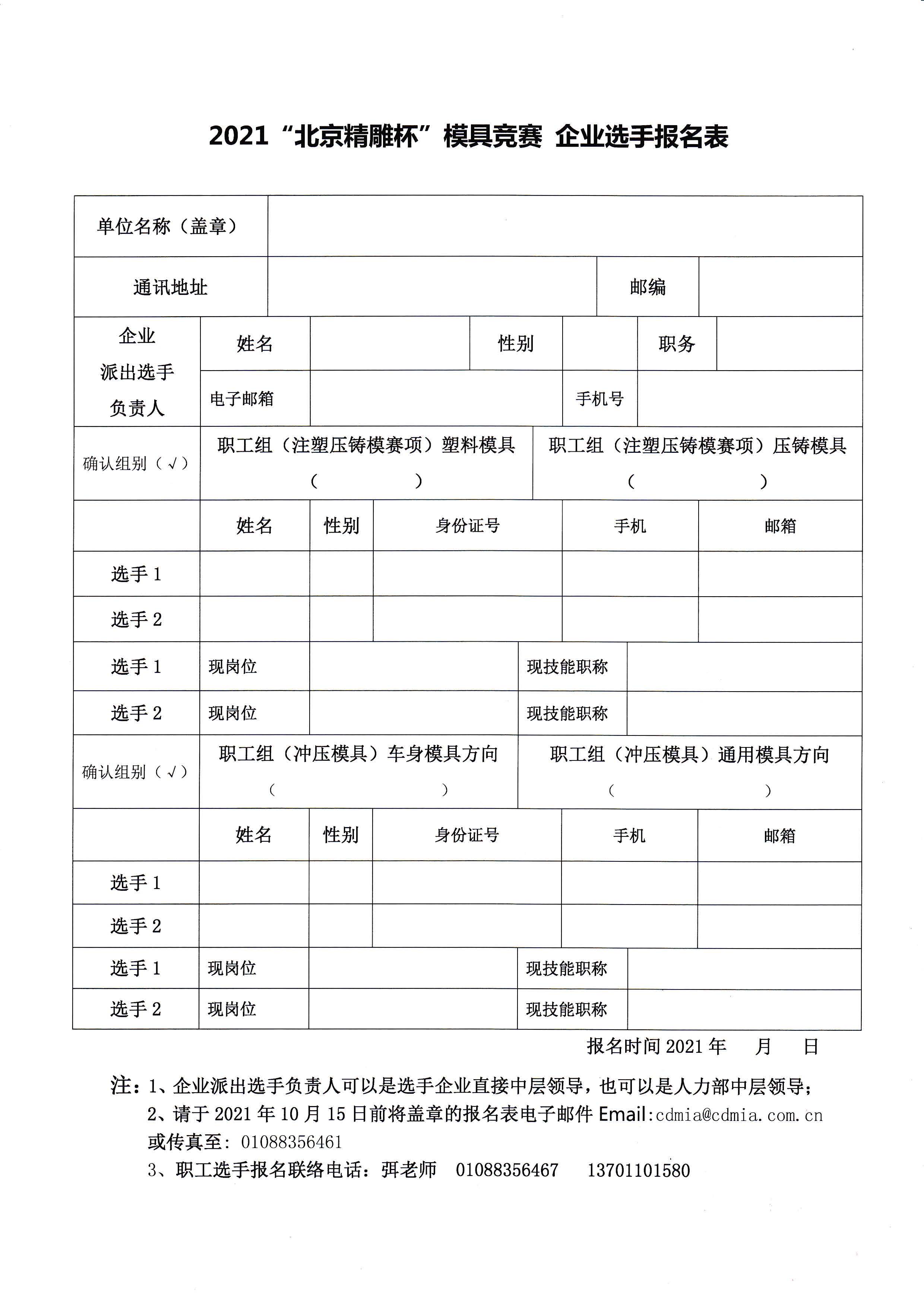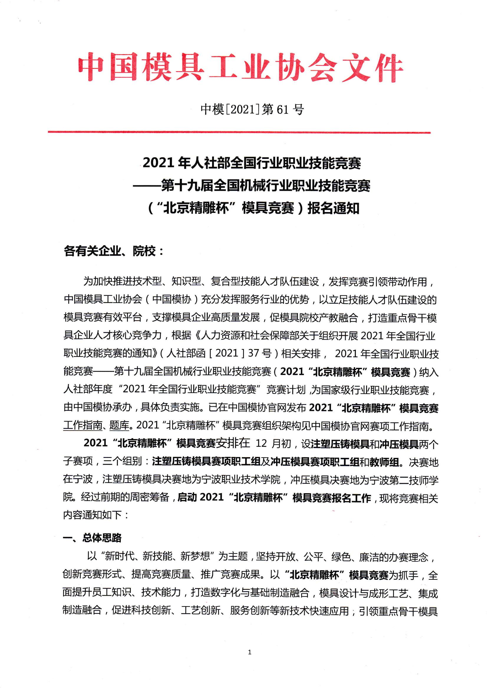第十九届全国机械行业职业技能竞赛(“北京精雕杯”模具竞赛)报名通知