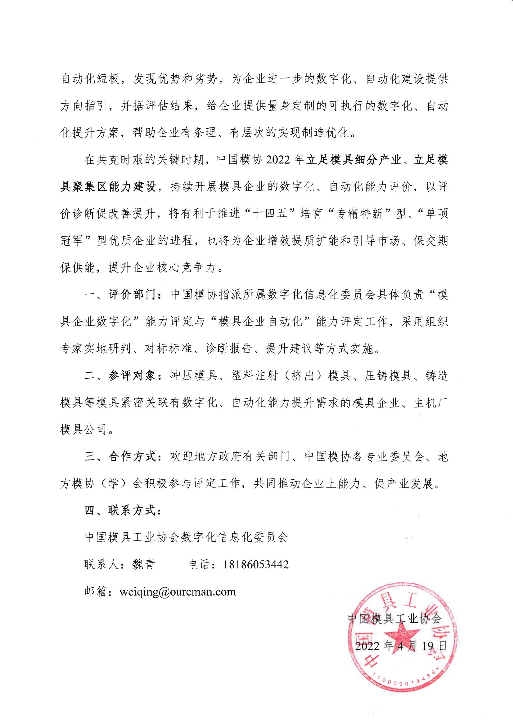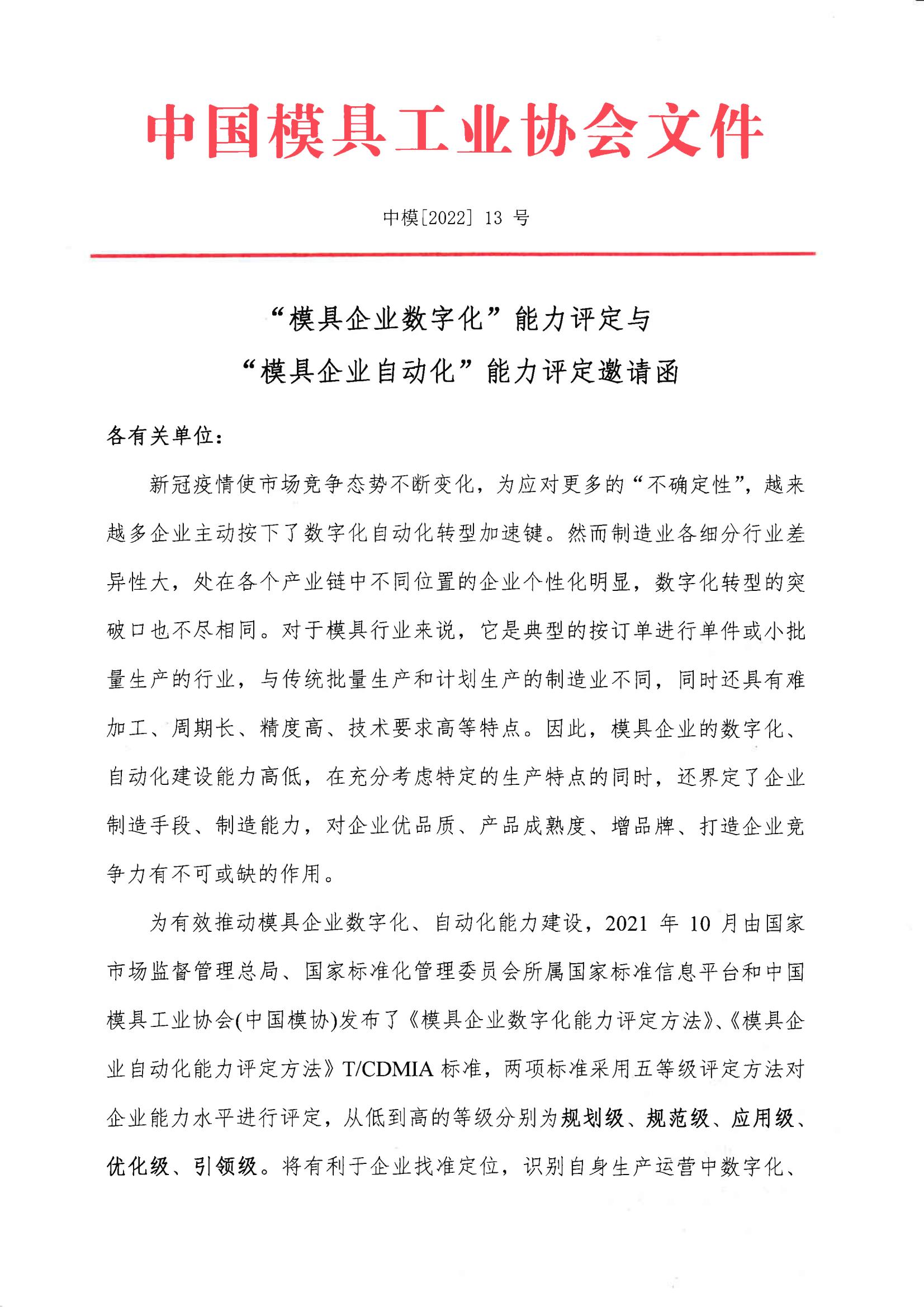 “模具企业数字化”能力评定与“模具企业自动化”能力评定邀请函