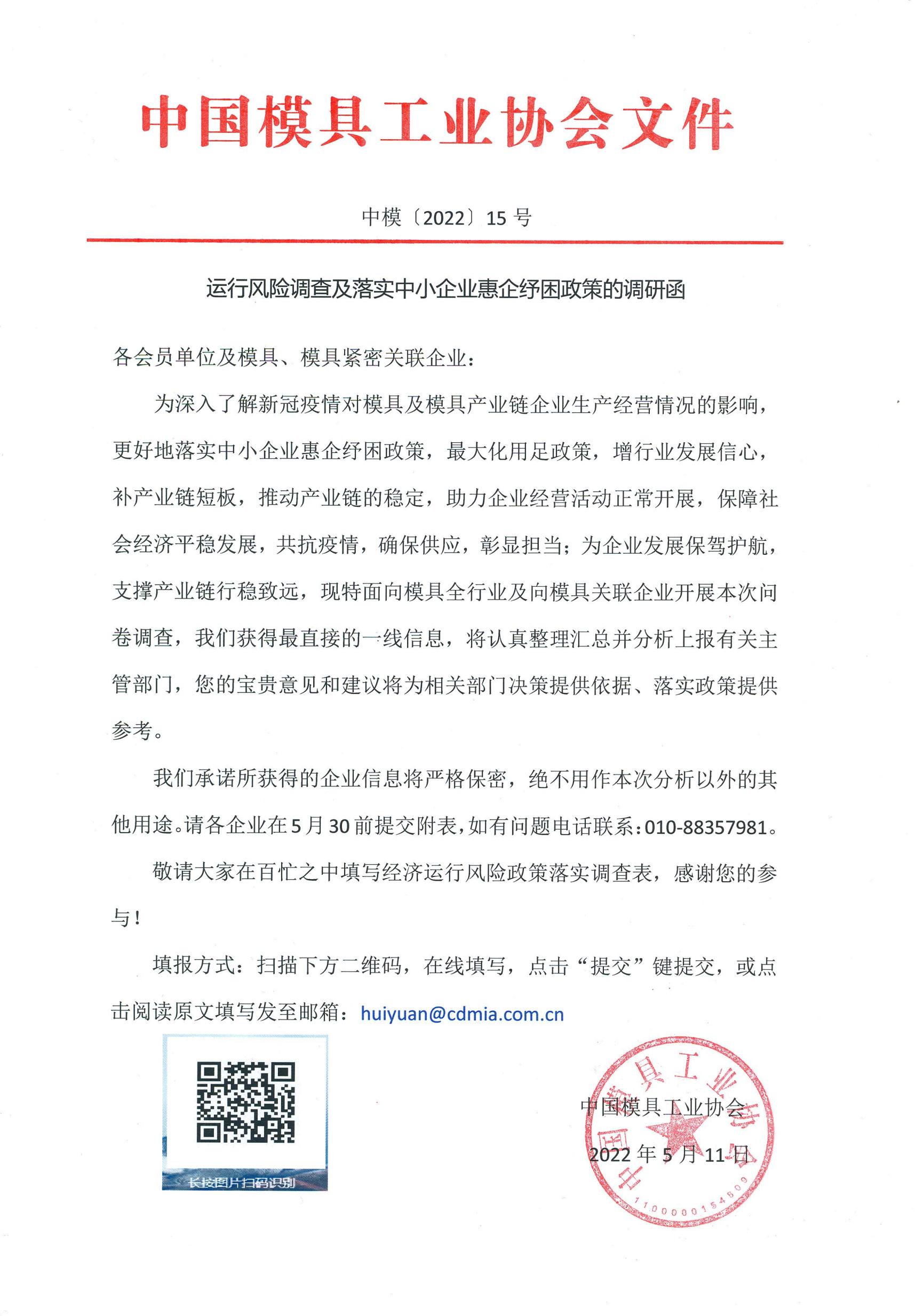 运行风险调查及落实中小企业惠企纾困政策的调研函