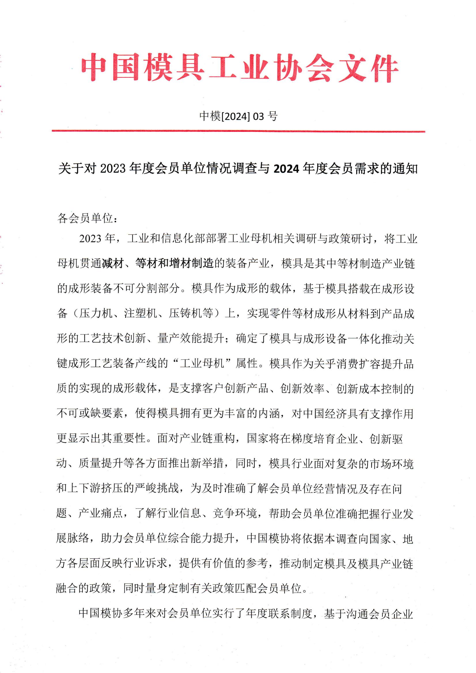 关于对2023年度会员单位情况调查与2024年度会员需求的通知