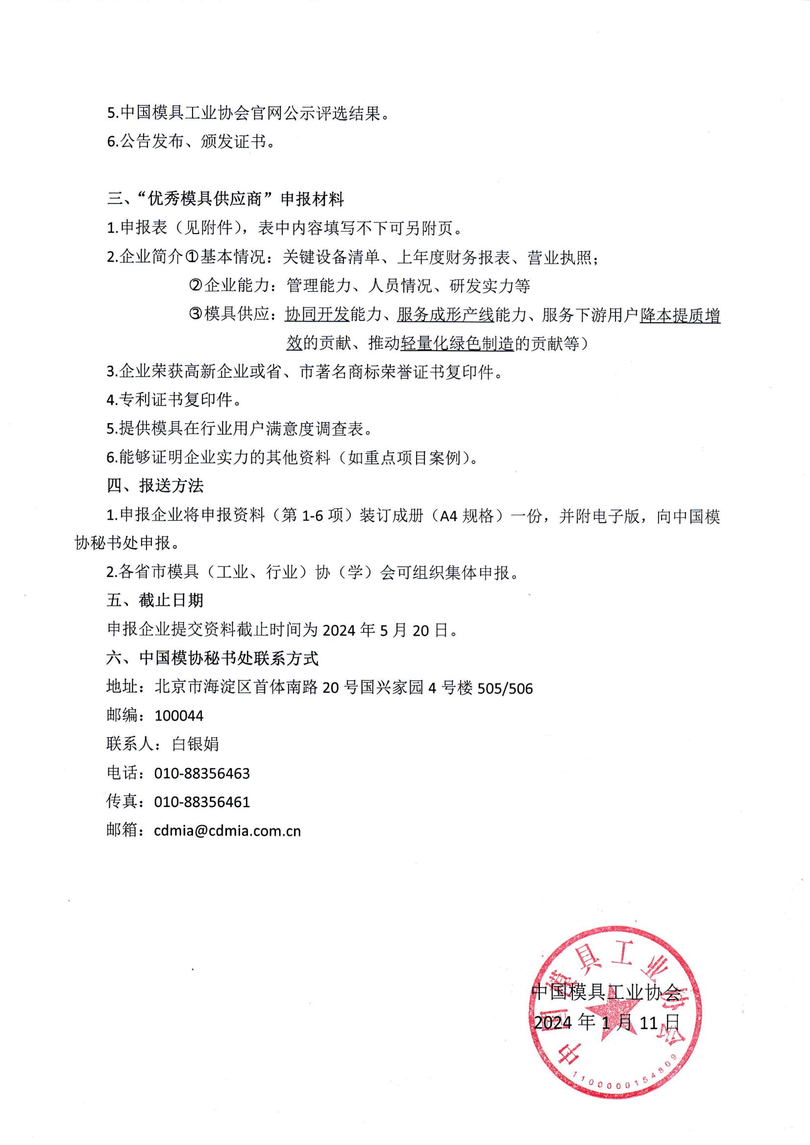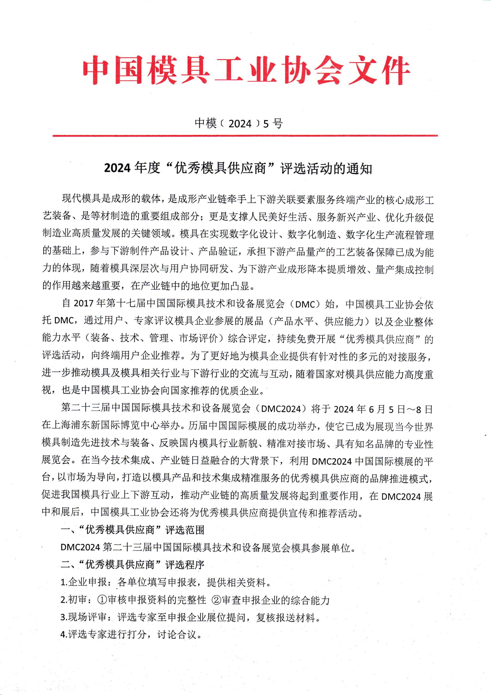 2024年度“优秀模具供应商”评选活动的通知