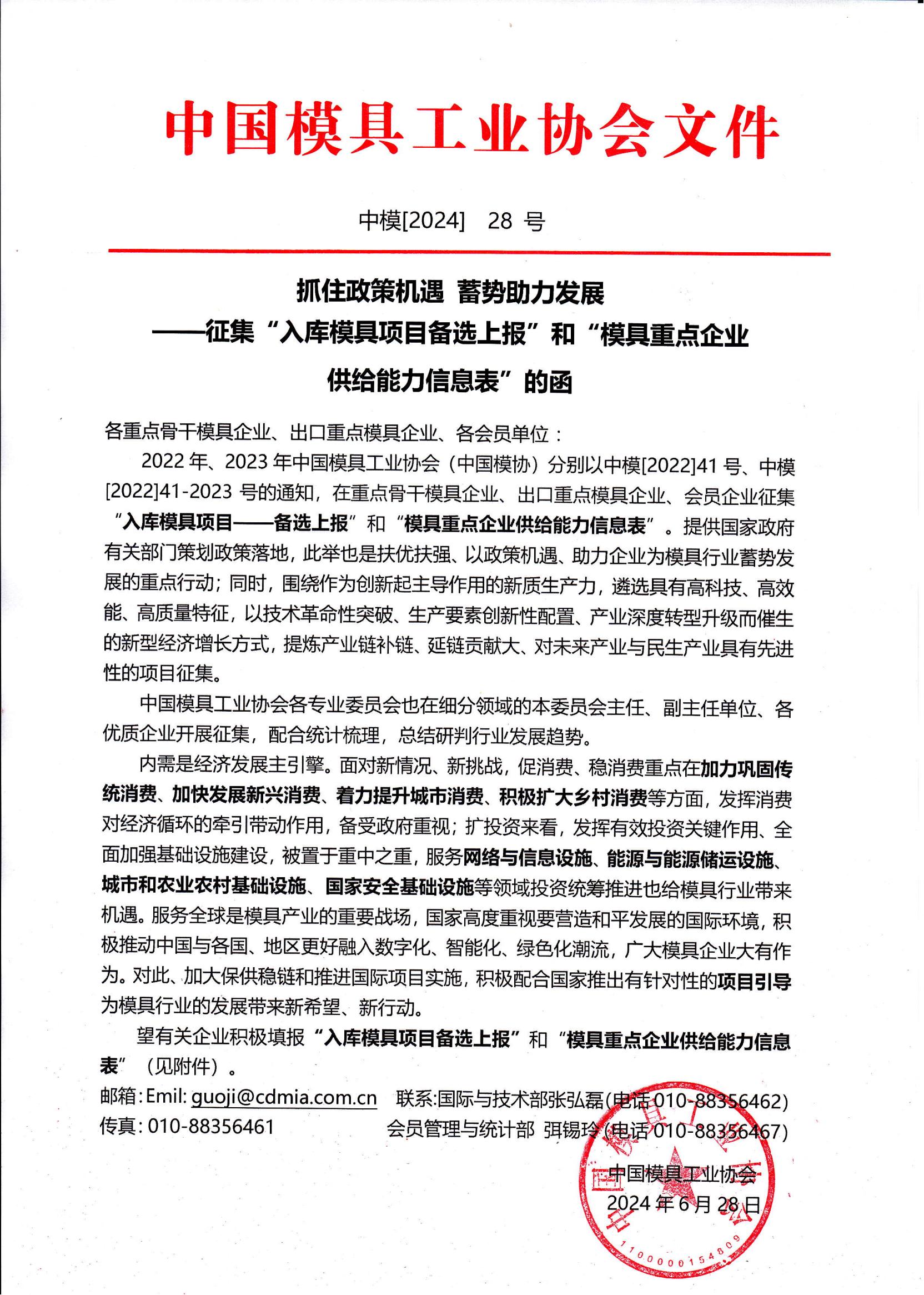 抓住政策机遇 蓄势助力发展——征集“入库模具项目备选上报”和“模具重点企业供给能力信息表”的函